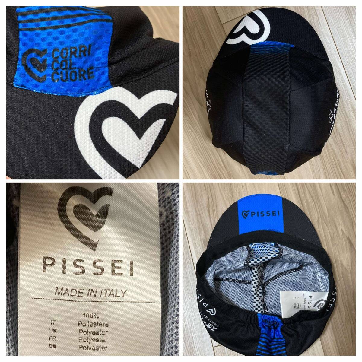 送料230★美品 正規 イタリア製 ピセイ PISSEI サイクリングキャップ サイクルキャップ by スポーツバイクファクトリー 良質品 651 黒×青