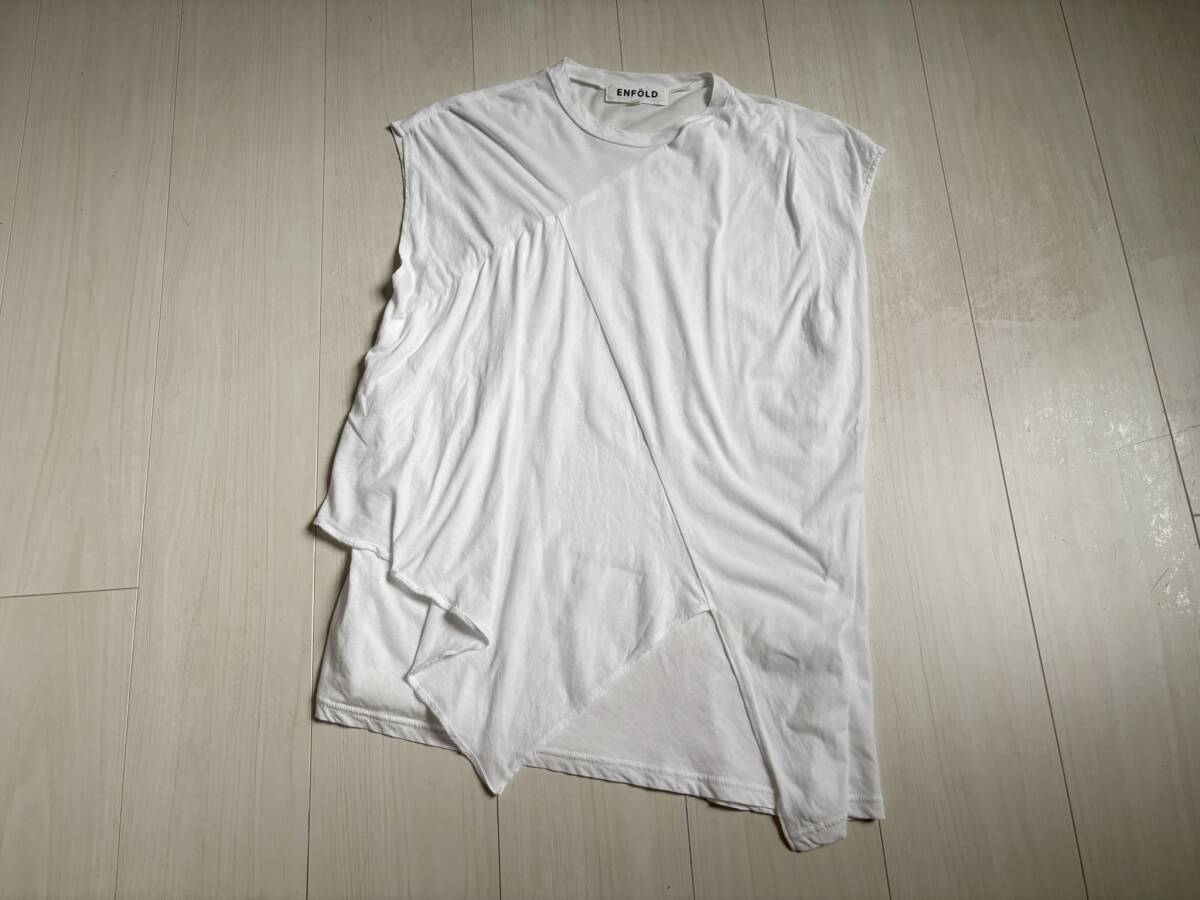 ENFOLD エンフォルド カットソー 変形 アシンメトリー 切替 ノースリーブ 38 白 ホワイト コットン ▼0638 になります。