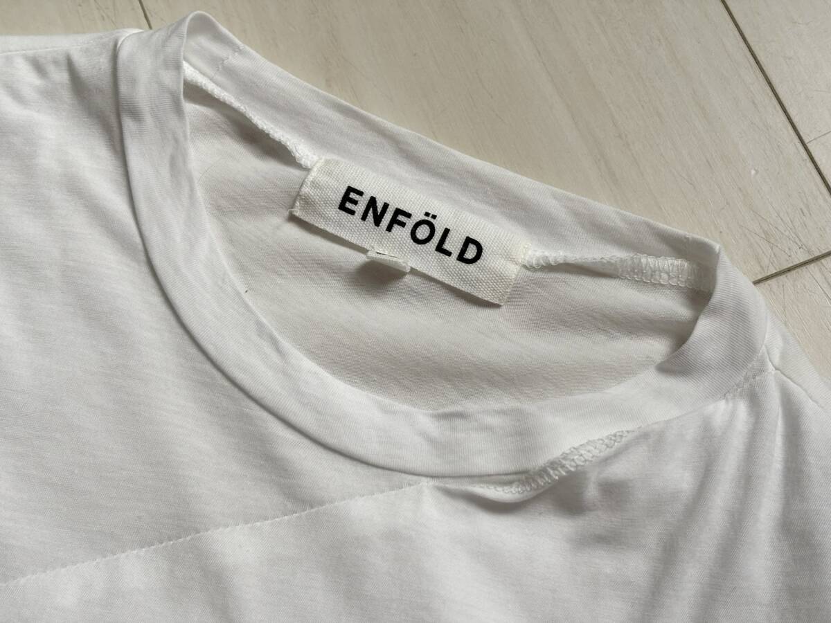 ENFOLD エンフォルド カットソー 変形 アシンメトリー 切替 ノースリーブ 38 白 ホワイト コットン ▼0638