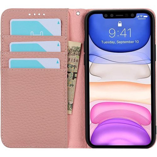 アイフォン for iPhone 11 ケース 牛革 本革 手帳型 for iPhone 11 財布型カバー for iPhone11 本革 手帳型 携帯スマホカバー 人気 おしゃれ 内蔵マグネット 耐汚れ 耐衝撃 カード収納 軽量 人気 -ピンク