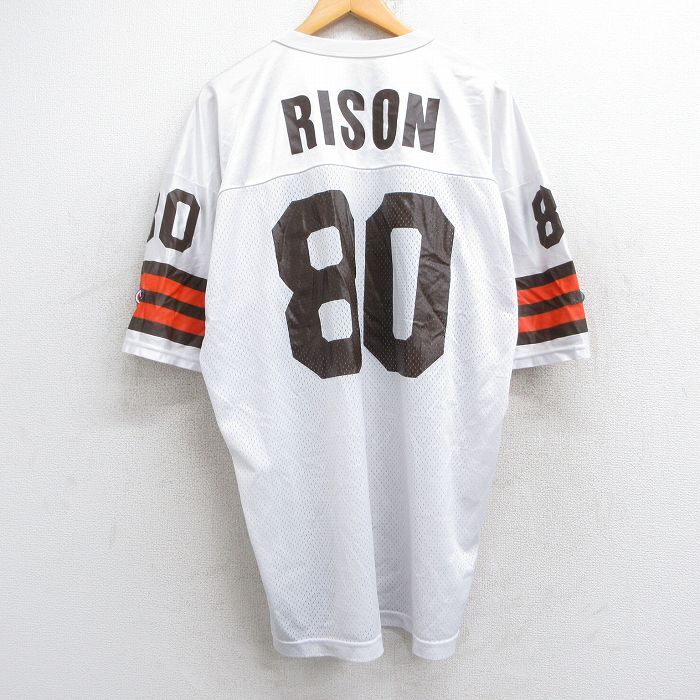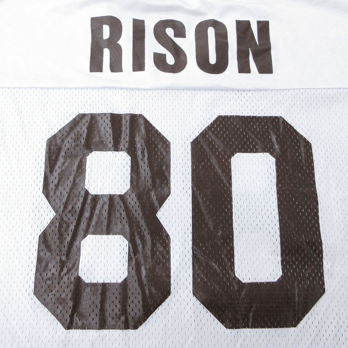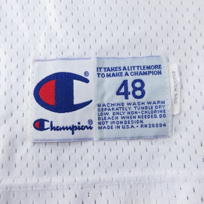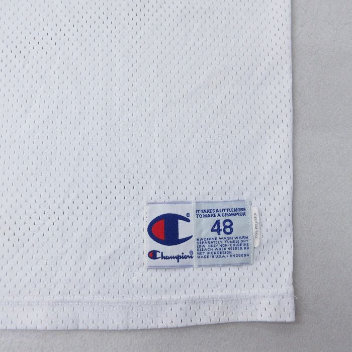 【商品名】 XL★古着 チャンピオン champion 半袖 ビンテージ フットボール Tシャツ メンズ 90年代 90s RISON 80 メッシュ地 大きいサイズ ロング丈 Vネック USA製 白 ゲームシャツ ユニフォーム