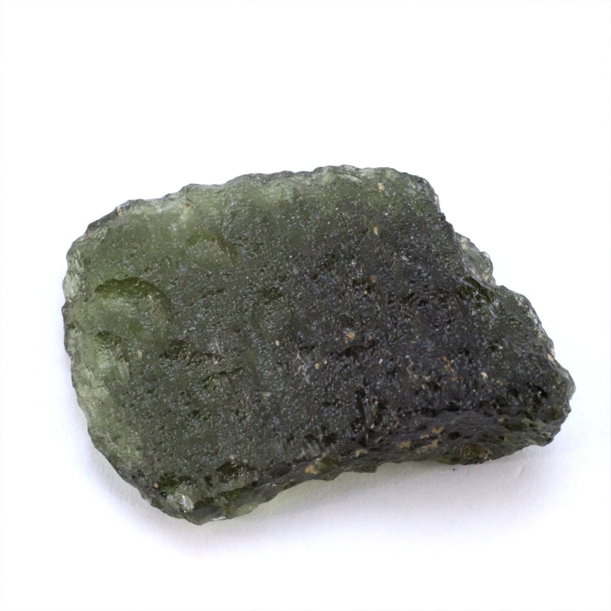 約1500万年前にネルトリンガー・リース・クレーターを作った隕石に跳ね上げられた地表の物質が急速に溶解・濃縮し、硬化したものと近年になってわかりました。隕石が地球上に落下した際の衝撃により形成された天然のガラスで瞬時に生じた温度と圧力、運動エネルギーにより特定の成分が集中して残り、ガラス化したものと言われています。1787年にモルダウと呼ばれるボヘミアのブルタバ川の近くで最初に発見されたと記録されており、当初はクリソライトとして紹介されていました。その後に1836年にボヘミアのモルダヴ川の名をとってモルダバイトと命名されました。約99%は南ボヘミア地方で発見されており残りの1%は南モラヴィア地方で発見されています。モラヴィア産のモルダバイトの色は茶色っぽい色をしています。モルダバイトにはハイクオリティ、ミディアムクオリティ、レギュラークオリティの品質が明確に存在しています。ハイクオリティはシダ植物のような模様がはっきりと見え、とても透明度が高いです。ミディアムクオリティはレギュラーより透明度が少し高くなったような感じで、レギュラークオリティのものは緑色が濃く透明度があまりなく、表面は孔食のような穴がボコボコとしています。