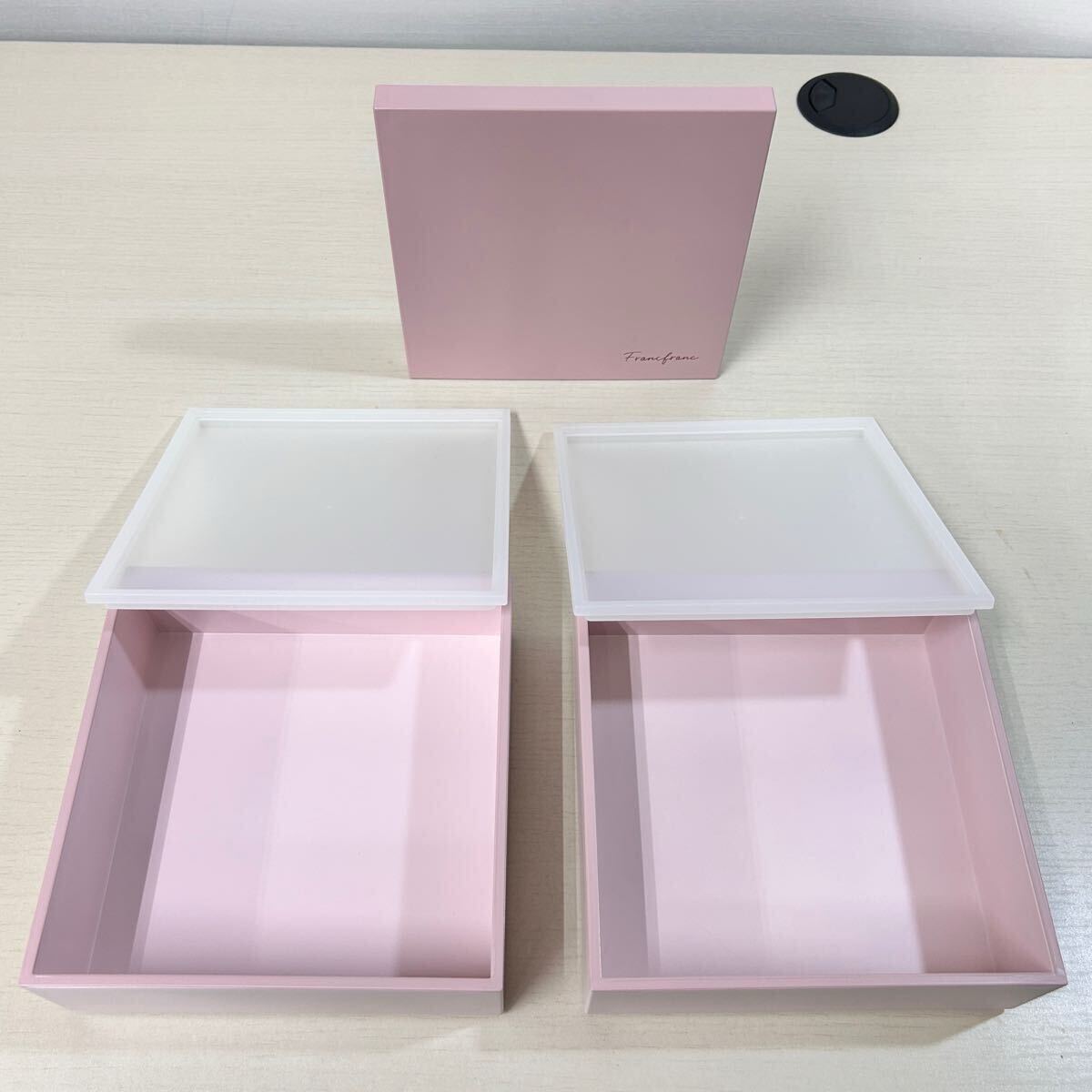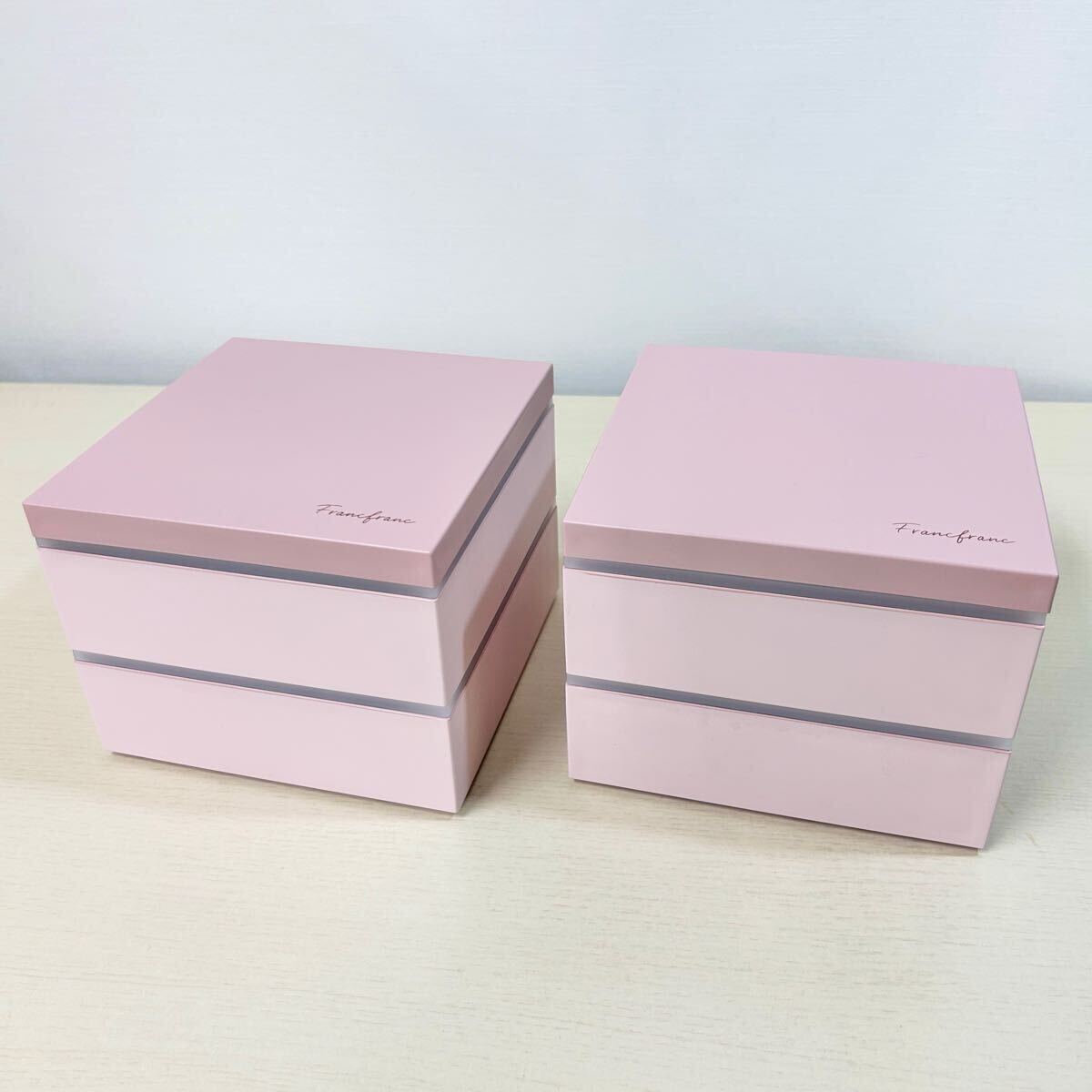 ★美品★2点セット★ Francfranc ロゴ 重箱 2段 ピンク 日本製 幅15*15*高さ12cm 弁当箱 女子 お出かけ アウトドア (06147G