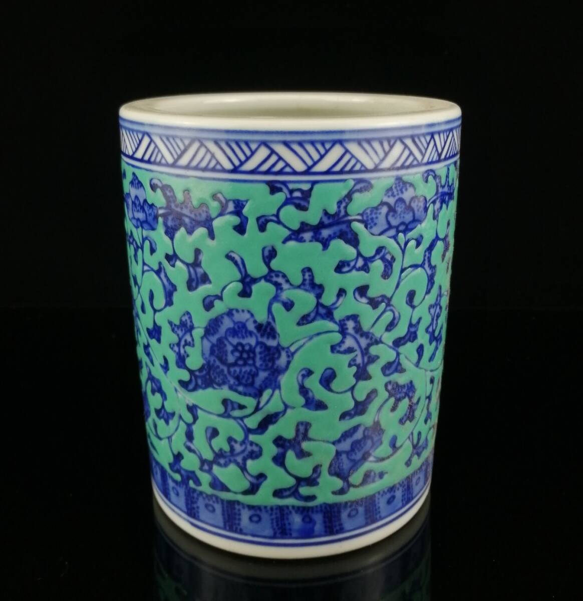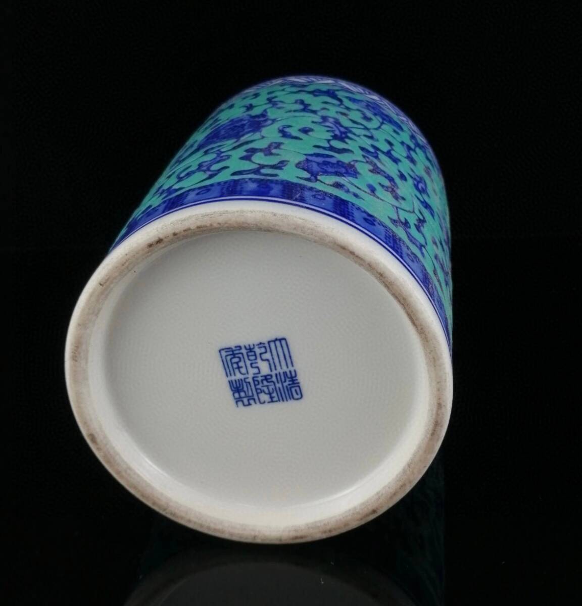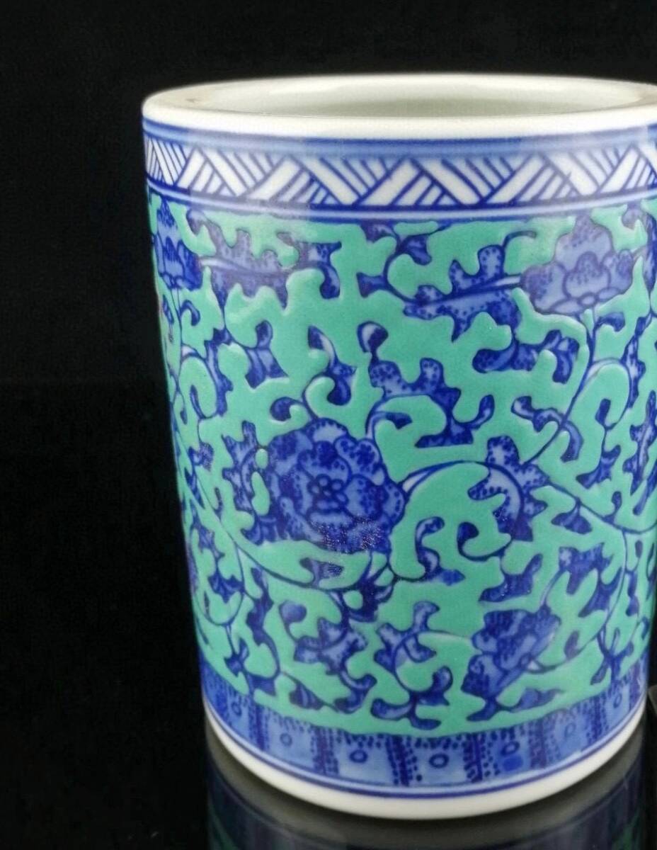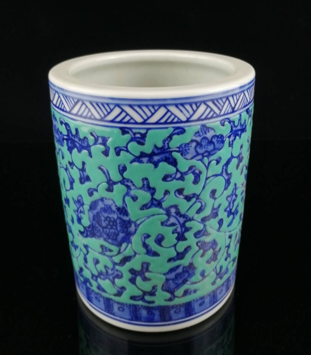 *珍品旧蔵* 大清 乾隆年制款 青釉 青花 纏枝蓮紋 筆筒 筆道具 陶芸 古陶磁器 極細工 唐物 中国古玩 骨董品 古美味 H46