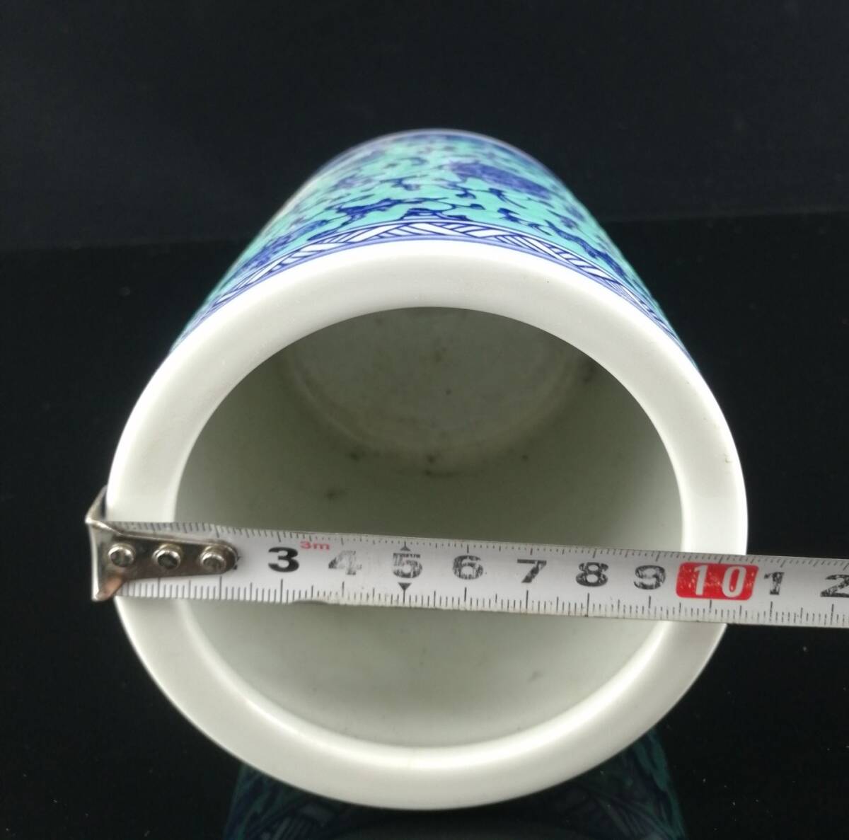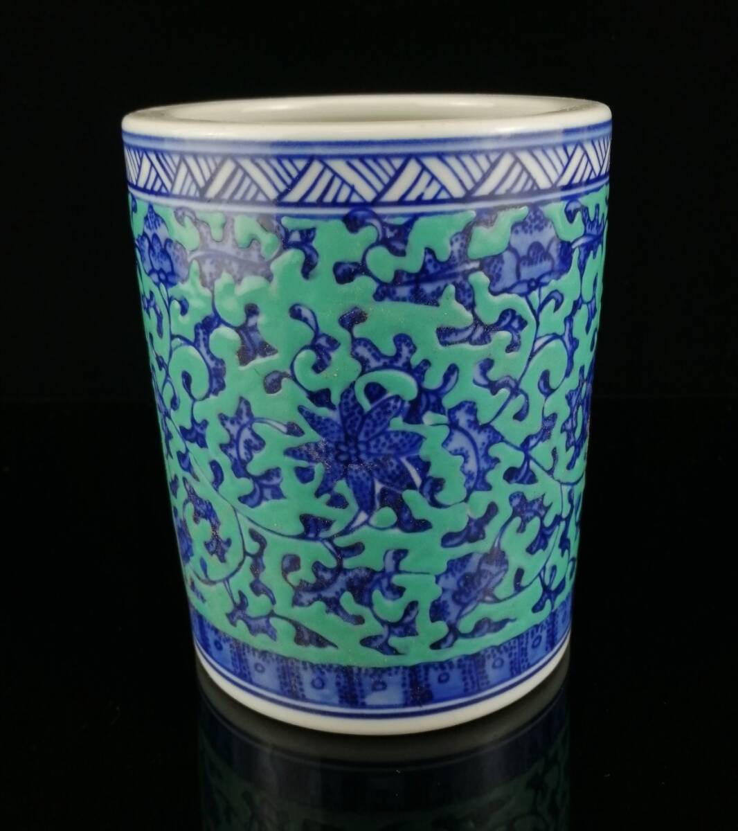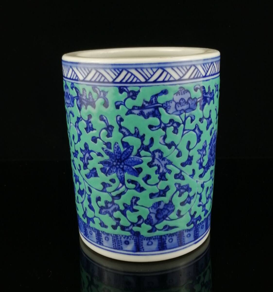 *珍品旧蔵* 大清 乾隆年制款 青釉 青花 纏枝蓮紋 筆筒 筆道具 陶芸 古陶磁器 極細工 唐物 中国古玩 骨董品 古美味 H46