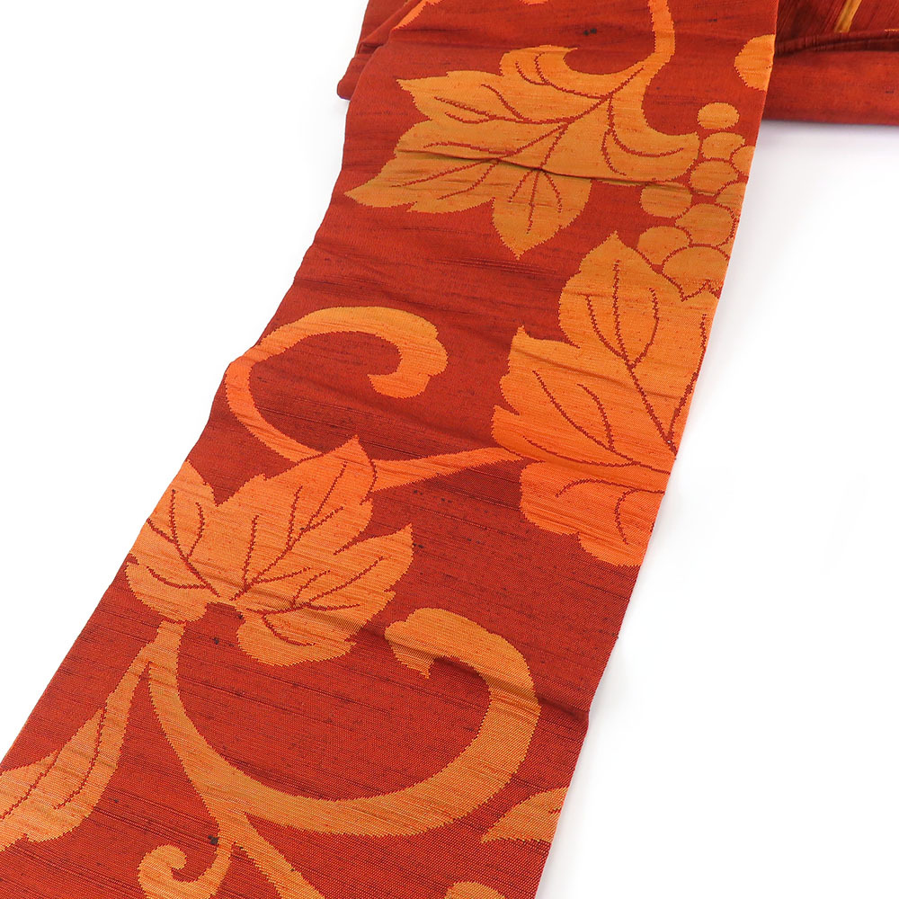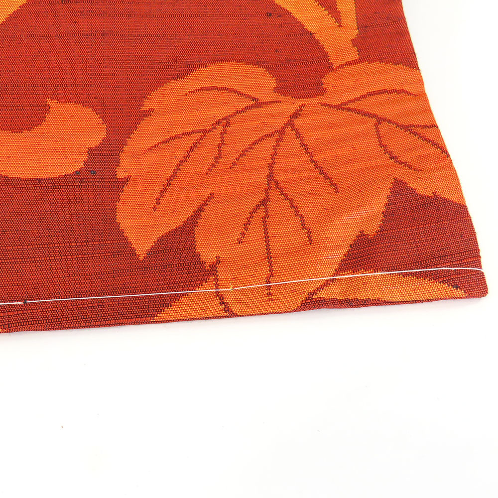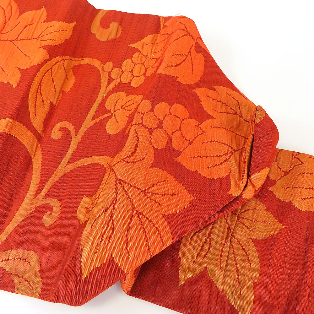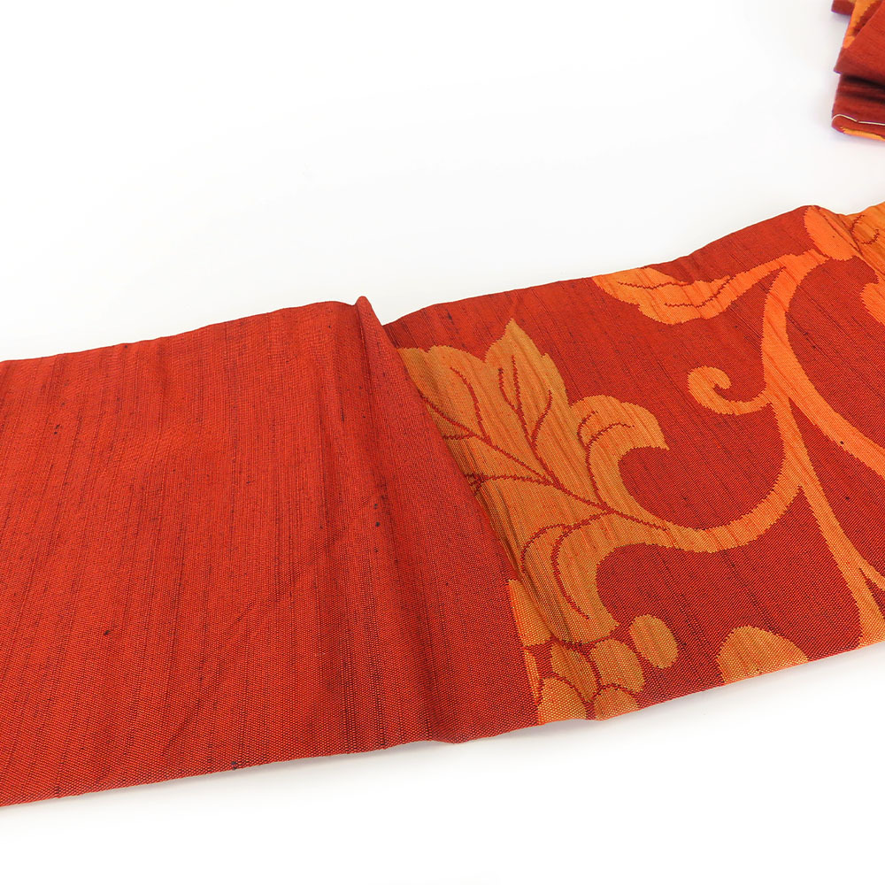 | 品名 | 【中古】 名古屋帯 正絹(金銀糸除く) 朱 オレンジ 松葉仕立て しつけ糸あり 紬 レディース 女性 |