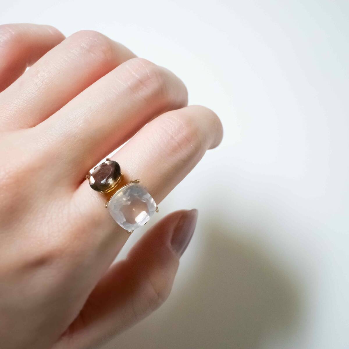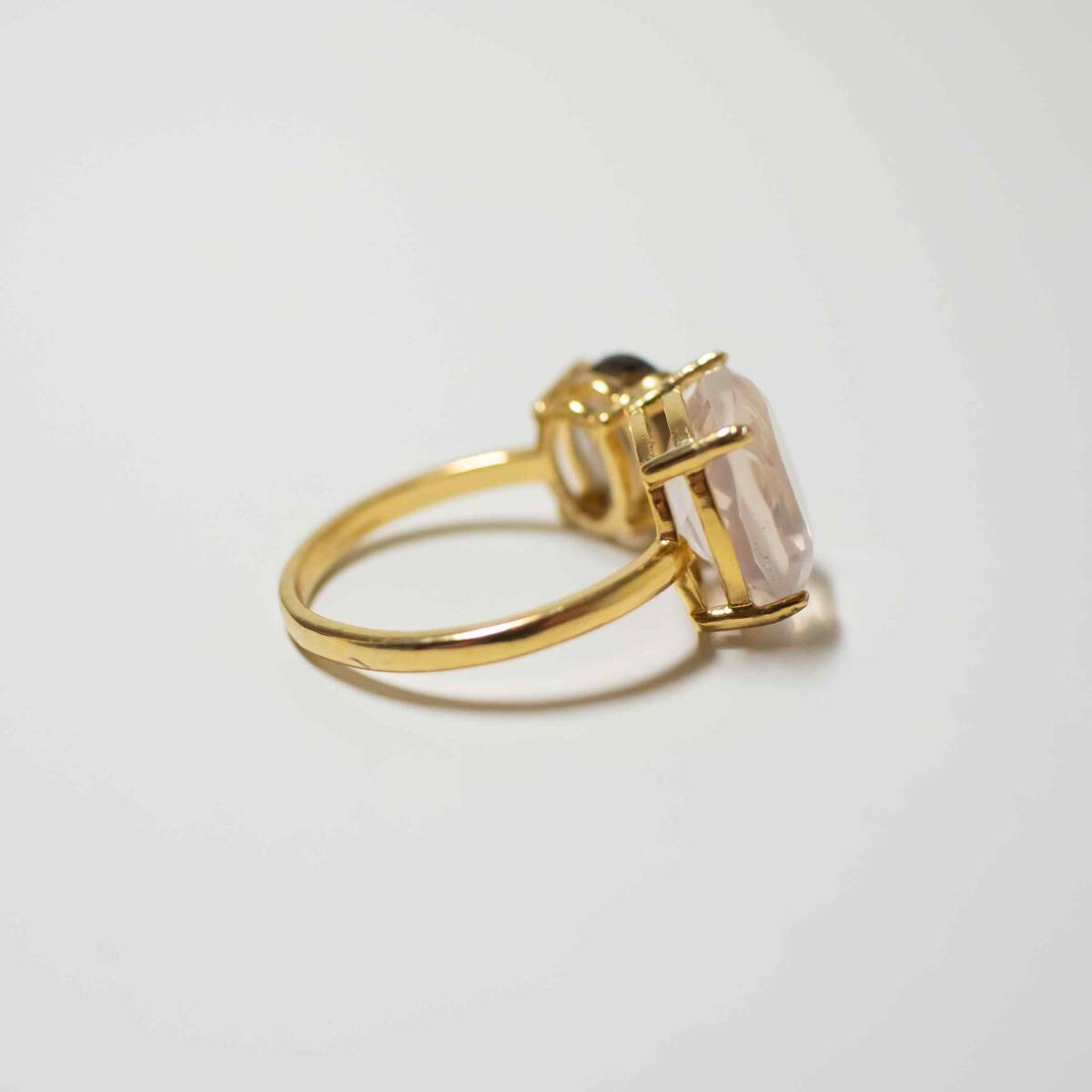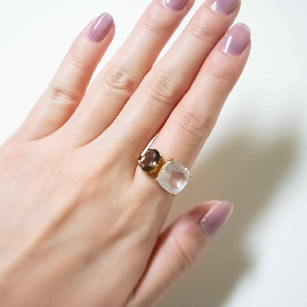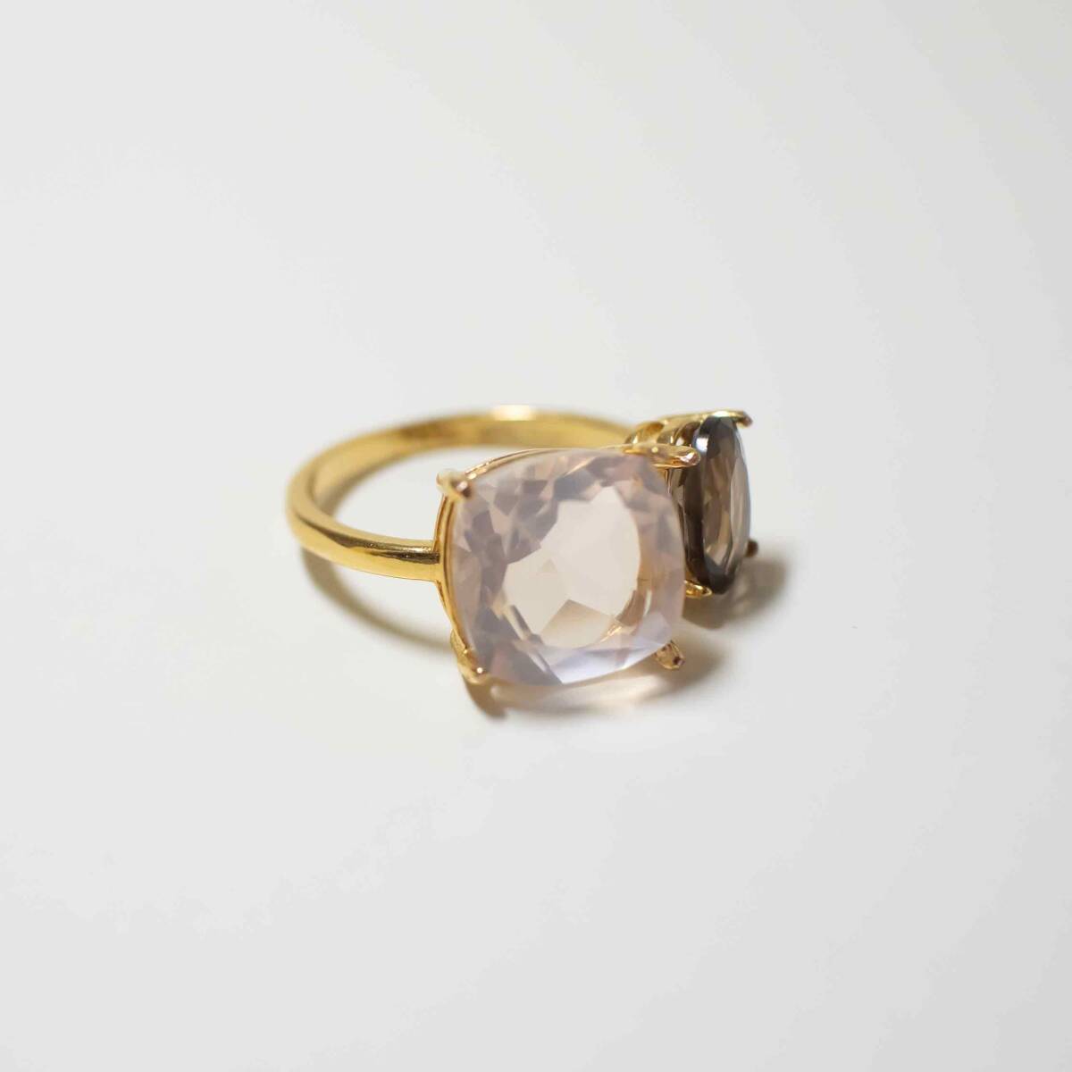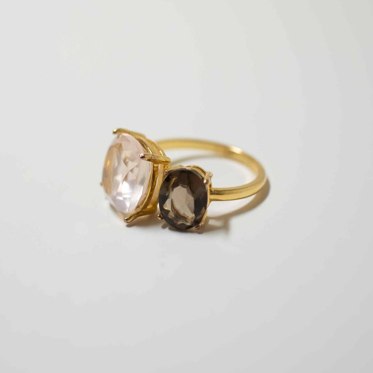 宝石質ローズクォーツとスモーキークォーツの指輪です。