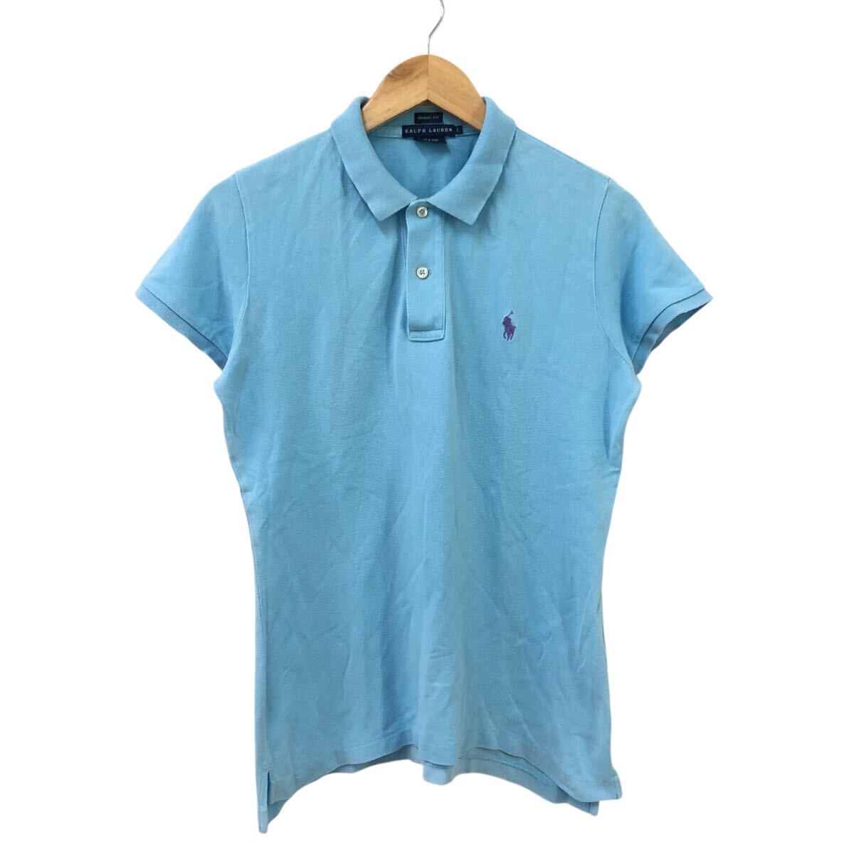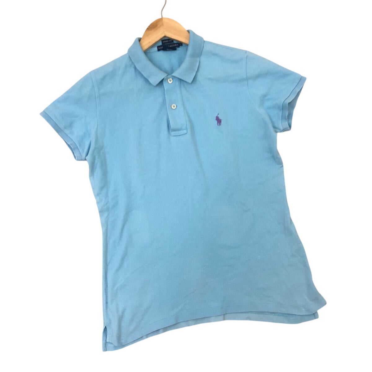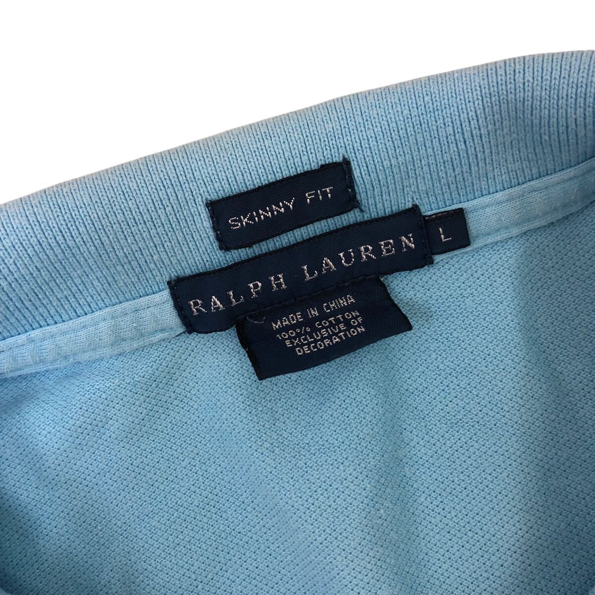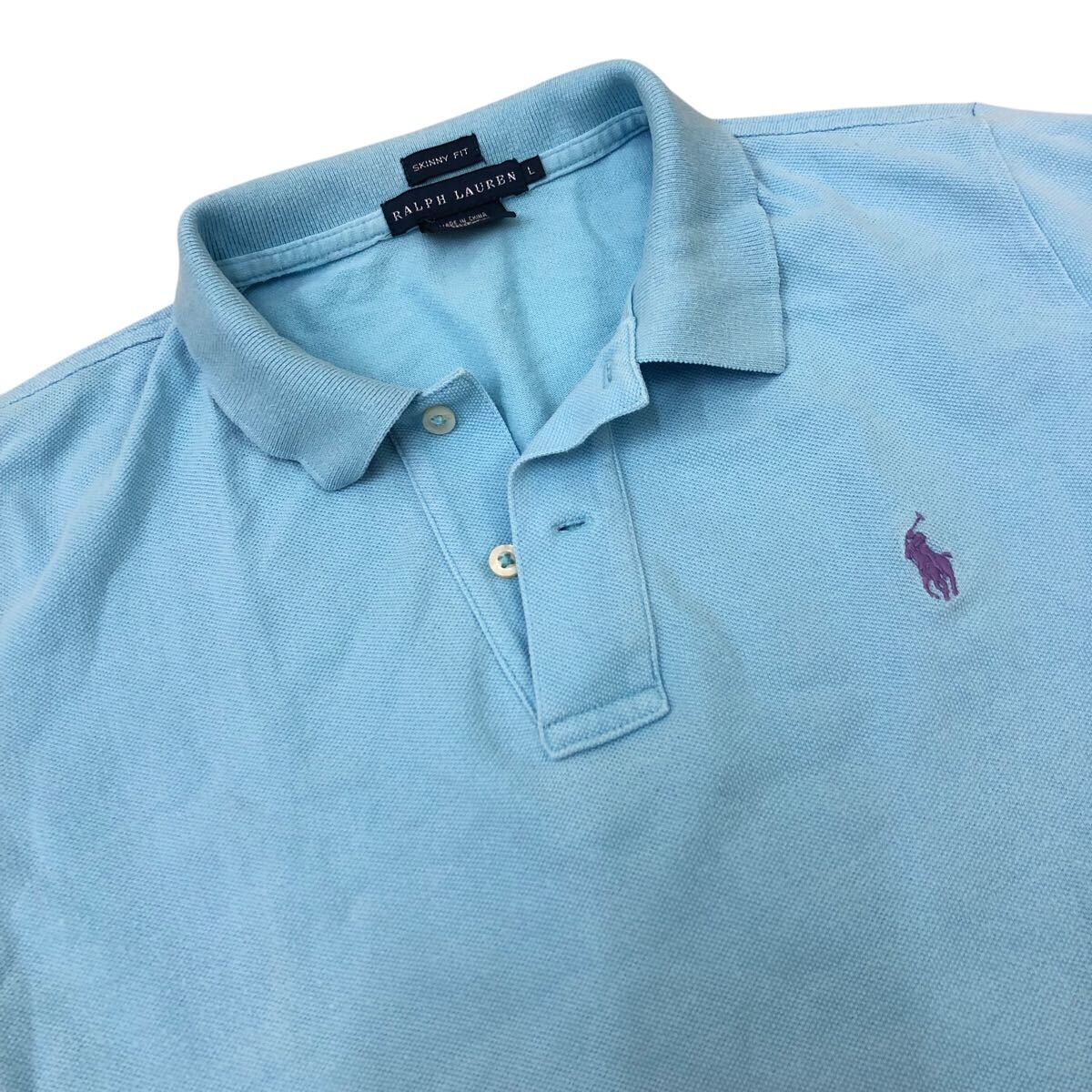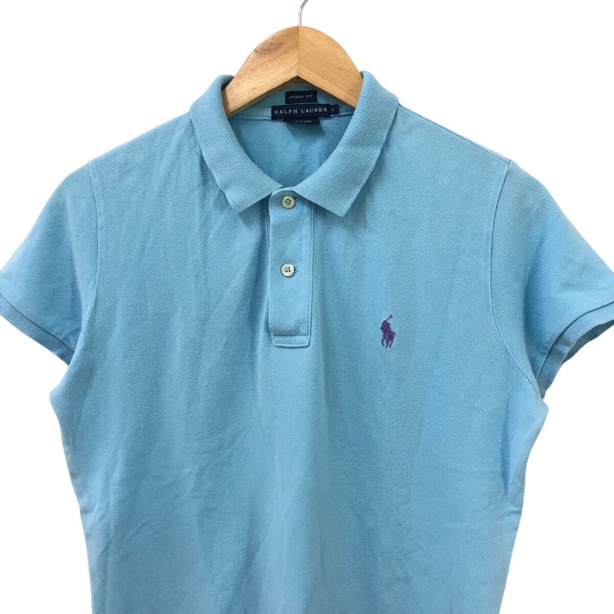 Nm309-60 RALPH LAUREN ラルフローレン SKINNY FIT 半袖 ポロシャツ シャツ トップス カットソー ポニー 刺繍 ライトブルー 水色 L