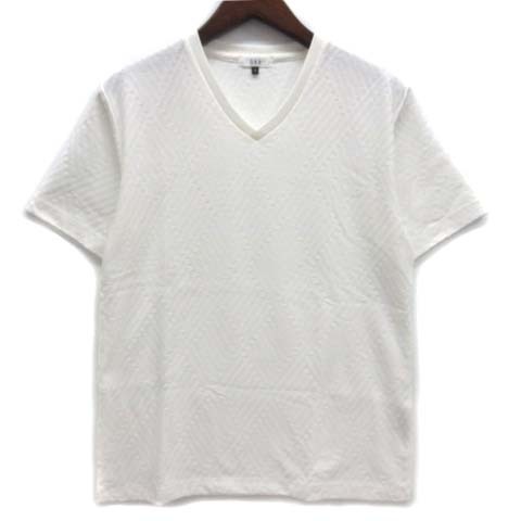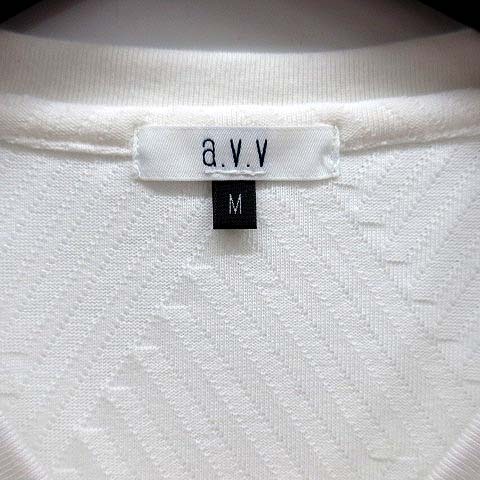 アー・ヴェ・ヴェ ミッシェルクラン a.v.v ダイヤ ジャガード リンクス カットソー Tシャツ 半袖 Vネック ホワイト M KHKHJ48039 メンズ