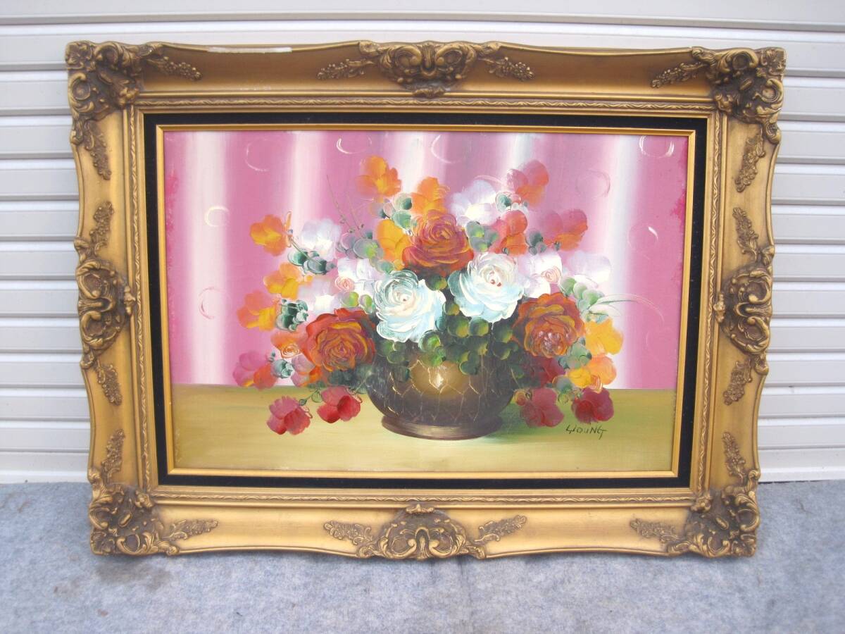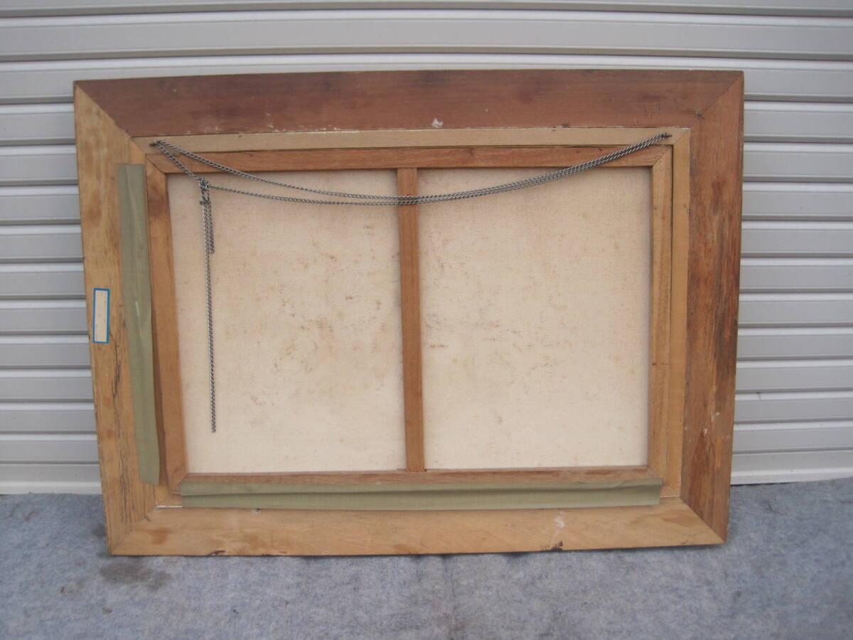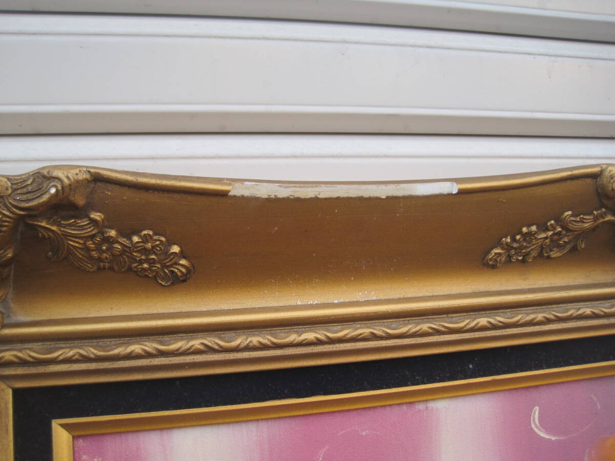絵に極端な汚損など見た目の損傷はありませんが、額縁は出品に際してざっと拭きましたが、倉庫死蔵品だった為全体的に汚れや傷があったり、上縁の一部に欠けがございます(カケラはございません)ので補修前提もしくは絵のオマケ・緩衝材程度と捉えてください。