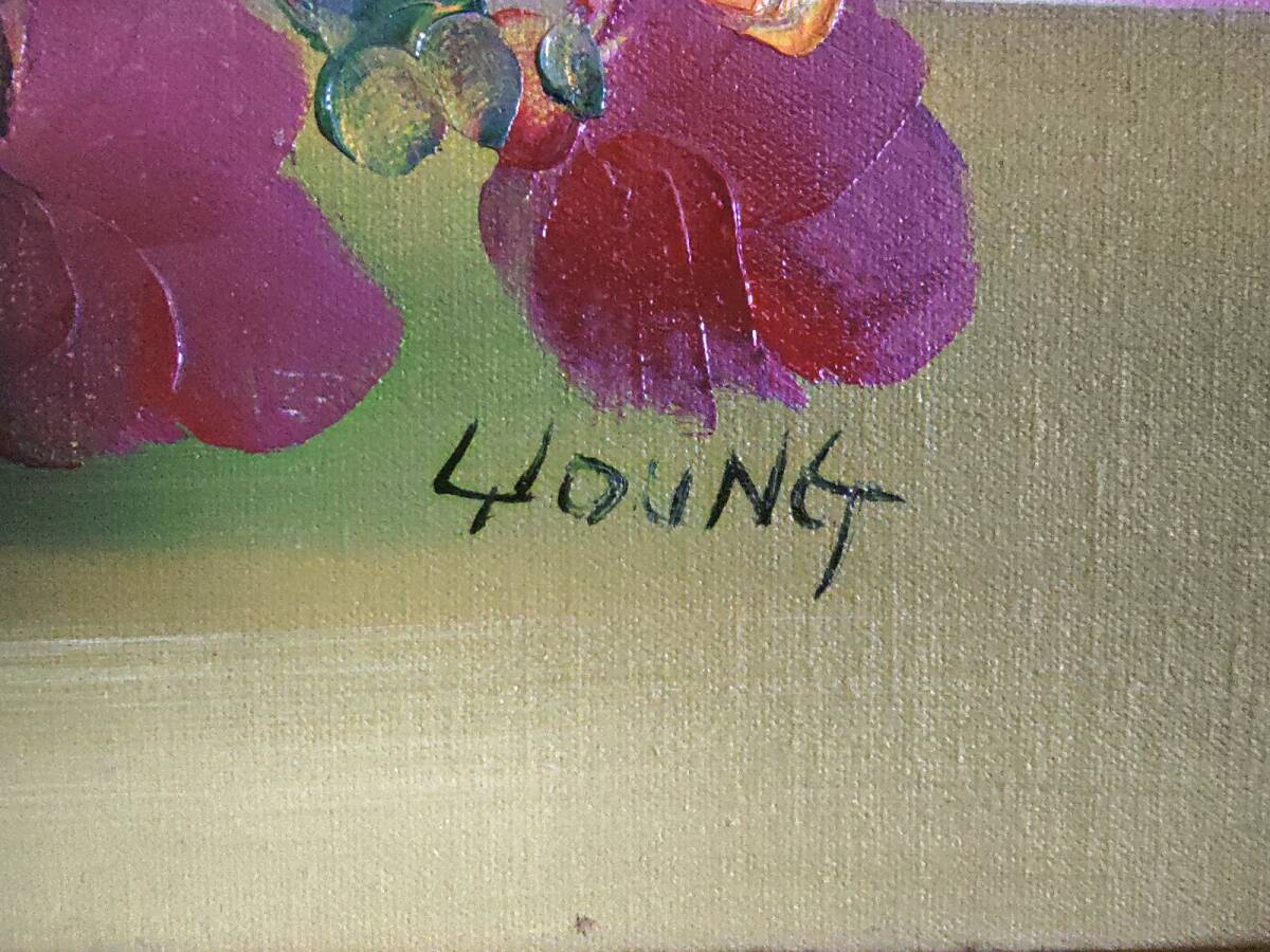 作者不明 花瓶に挿したバラなど花の油彩画