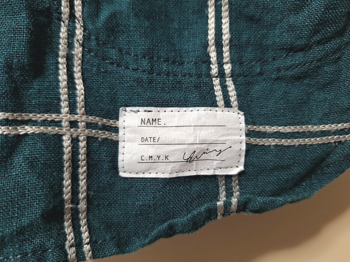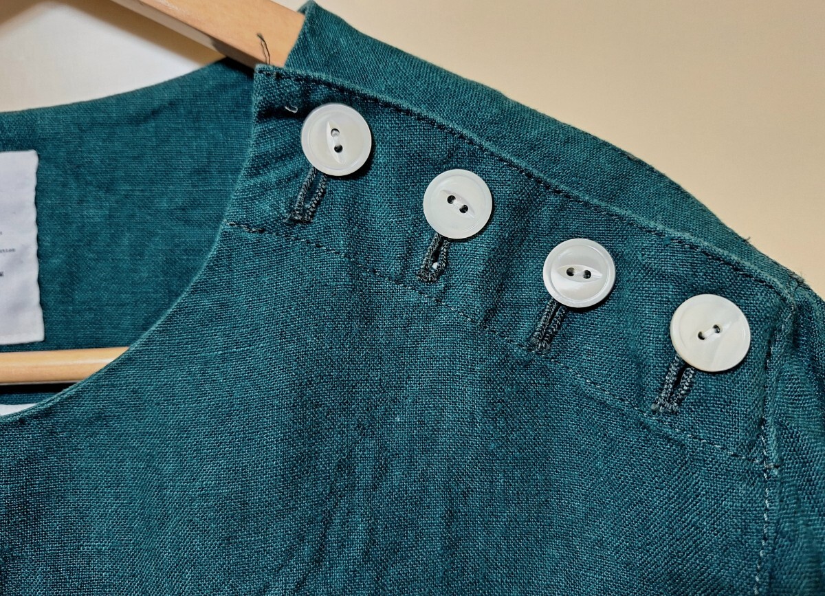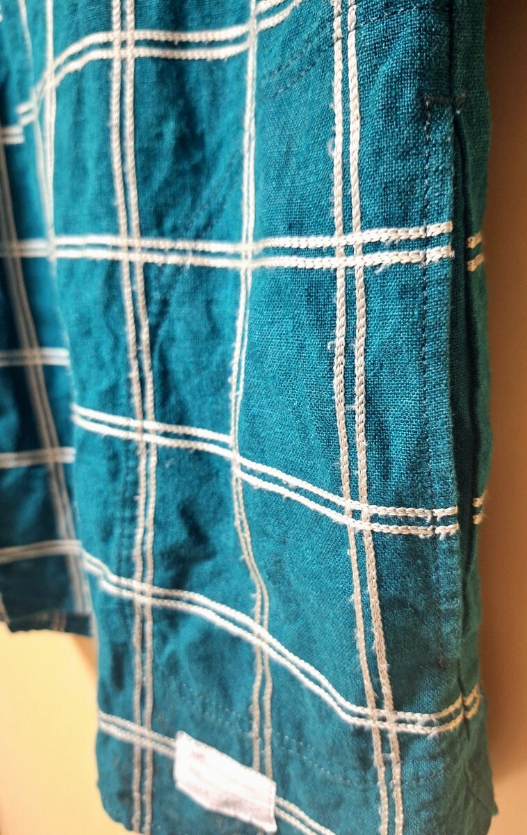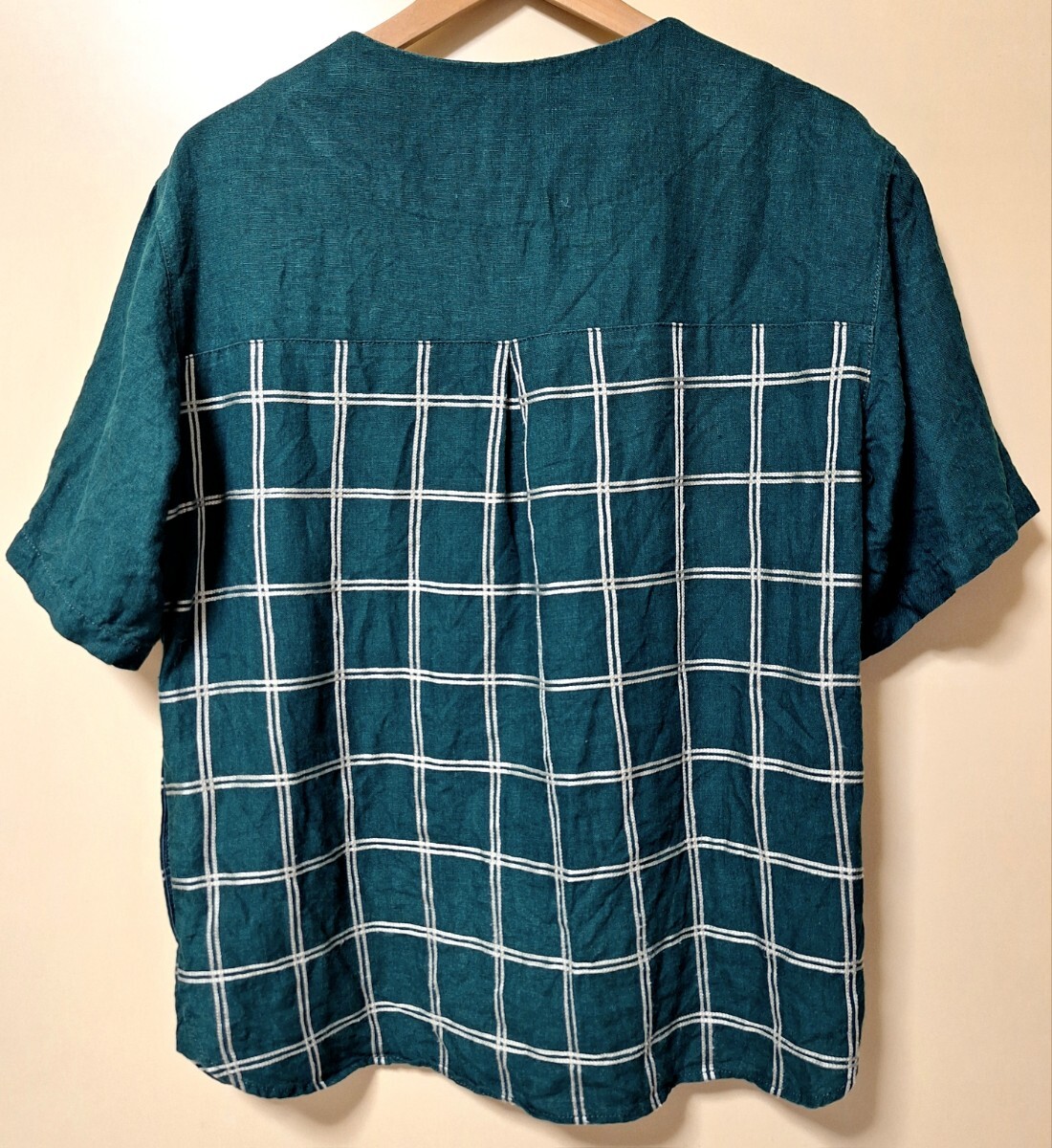 日本製 Name. リネンシャツ2麻100%リネンLINEN100%エメラルドグリーンvintageプルオーバーシャツ㈱I amショルダーボタンJAPANビンテージ