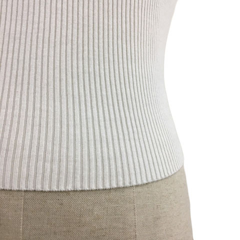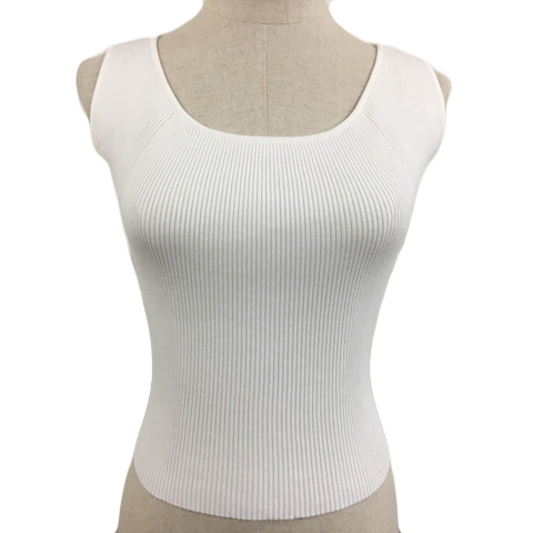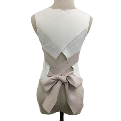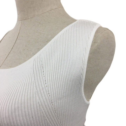 未使用品 マーキュリーデュオ カットソー ニット プルオーバー ラウンドネック リブ 無地 バックリボン ノースリーブ F 白 ベージュ