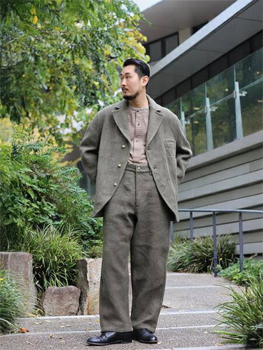 OX’ED SILVER とは・・・特定の労働者や職人、芸術家たちが着用していたワークウェアとしてのスーツ、およびそれに合わせて着用されていたシャツ、カットソー等を研究・分析し現代に蘇らせたレーベルです。