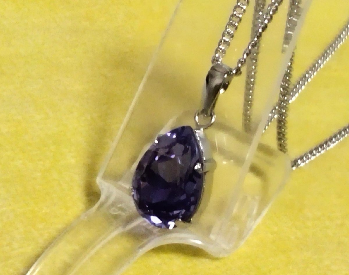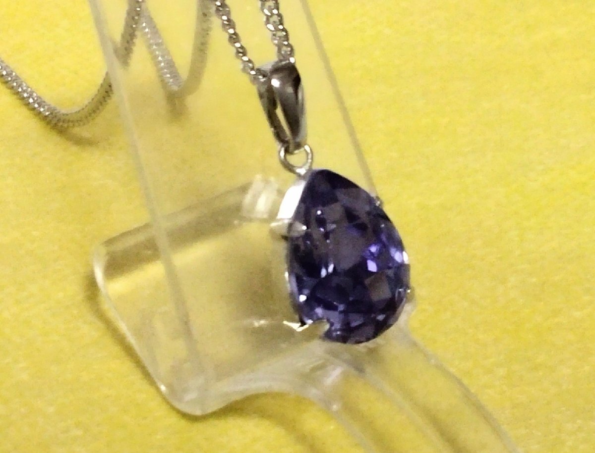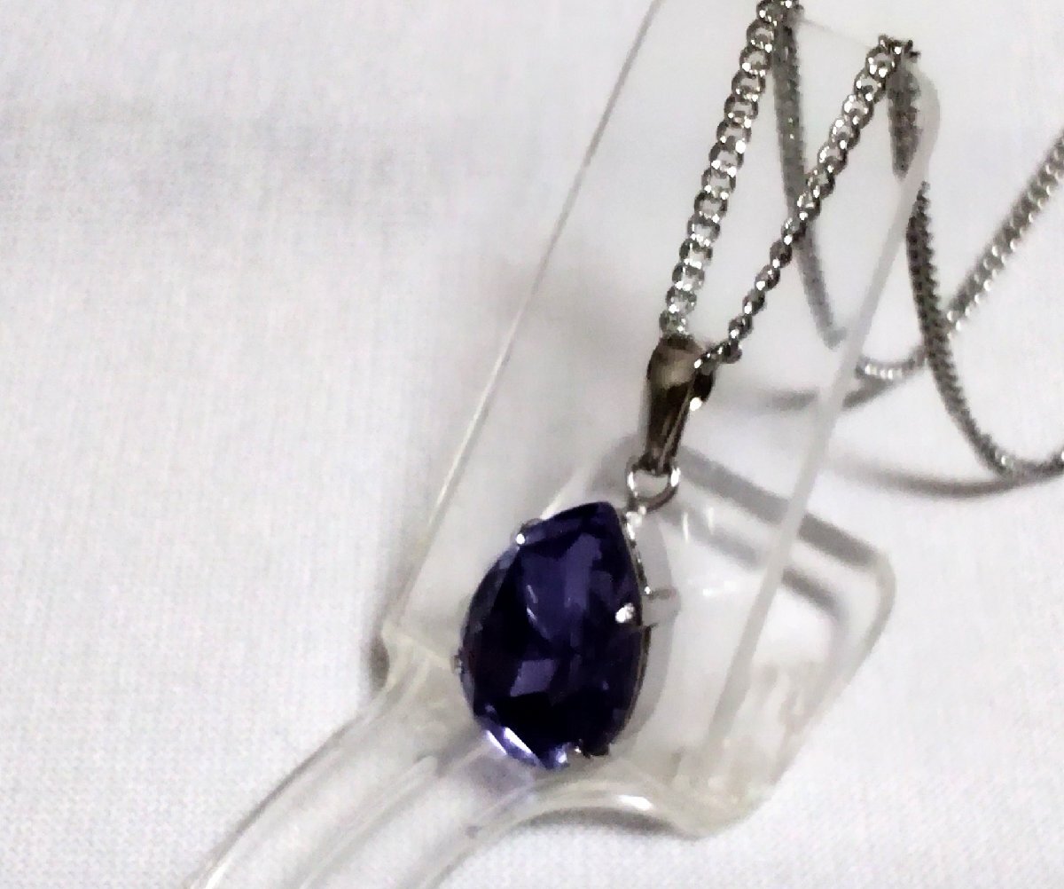 特徴: ![]() ●薄青紫色のエレガントな タンザナイトスワロフスキーを 雫形に加工したお洒落な スワロフスキーの雫ネックレスです! ![]() オシャレな貴方の ワンポイントアクセサリー! ![]() |