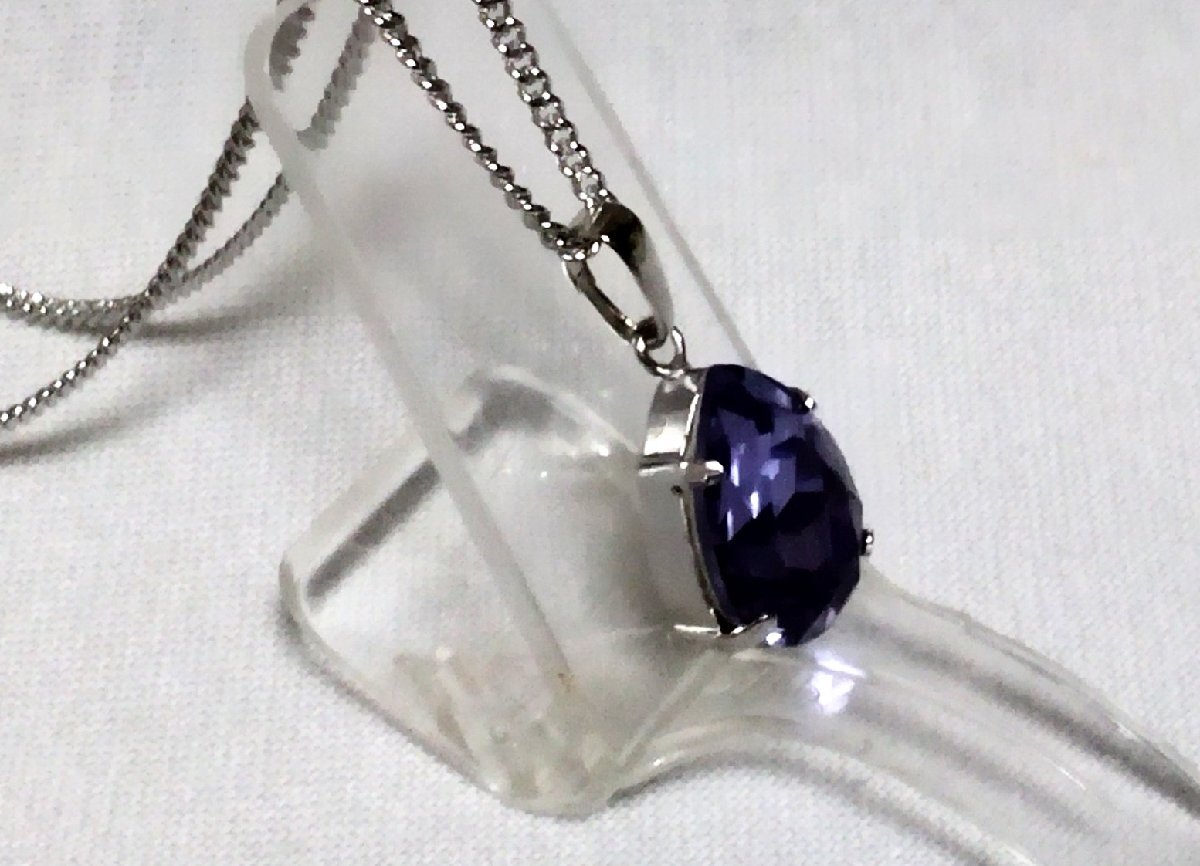 ◆トップの大きさは、15×10ミリです。 ◆ タンザナイトスワロフスキー 1石の大きさは、14×10ミリです。 ◆ チェーンは、ロジウムメッキの 喜平チェーン45cmです。 |