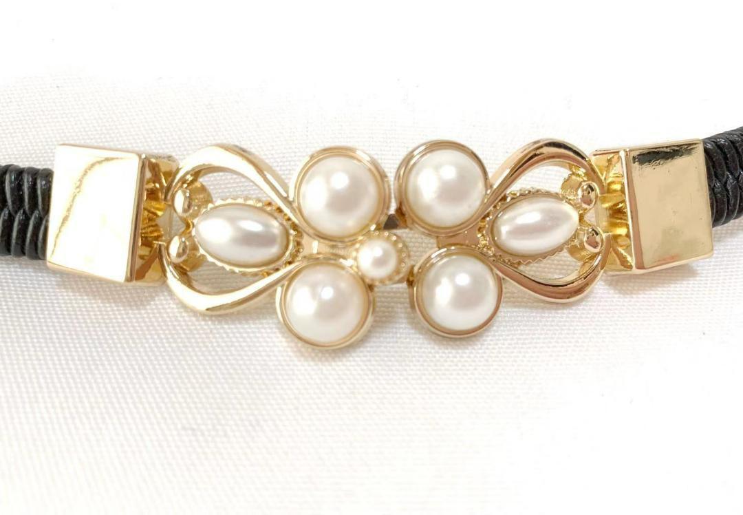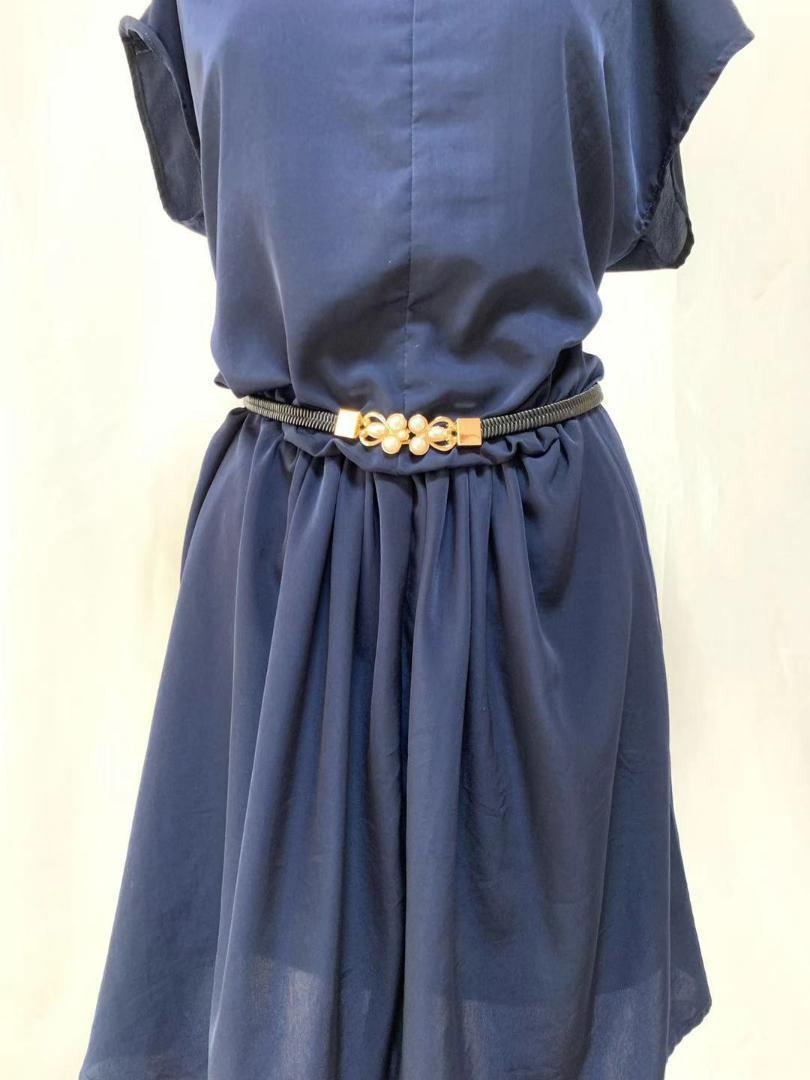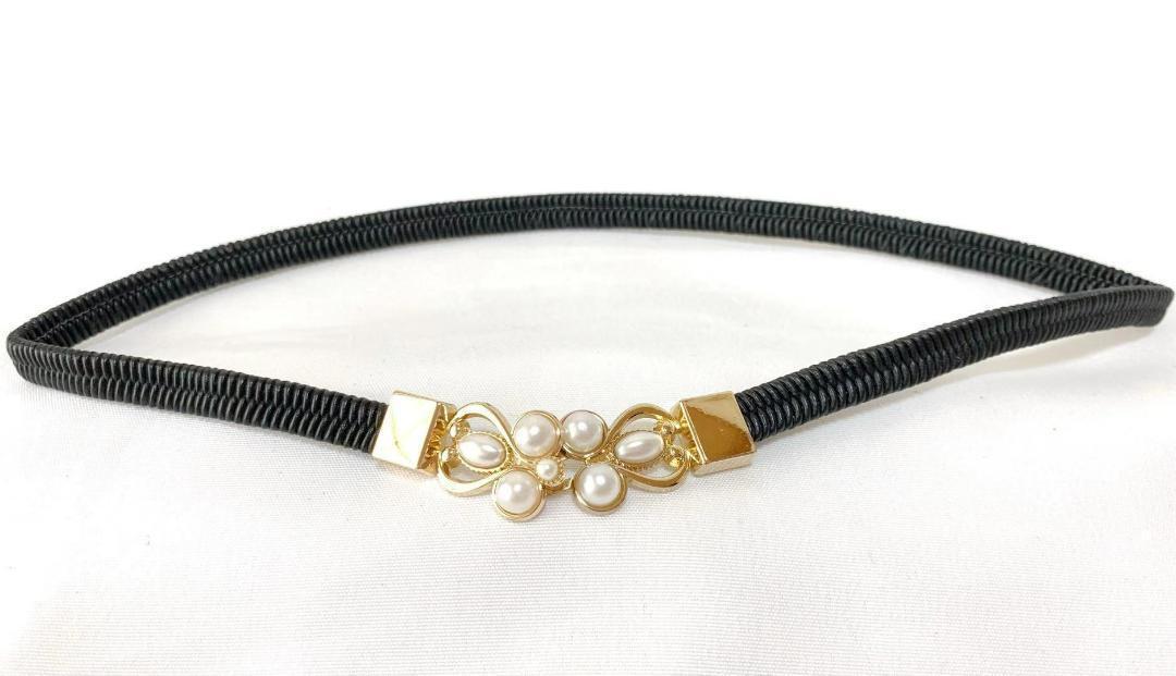 BE1054BK30★花柄のゴールドバックルのゴムベルト★黒