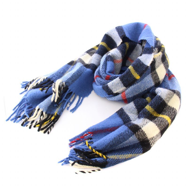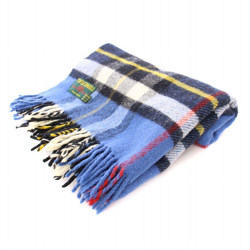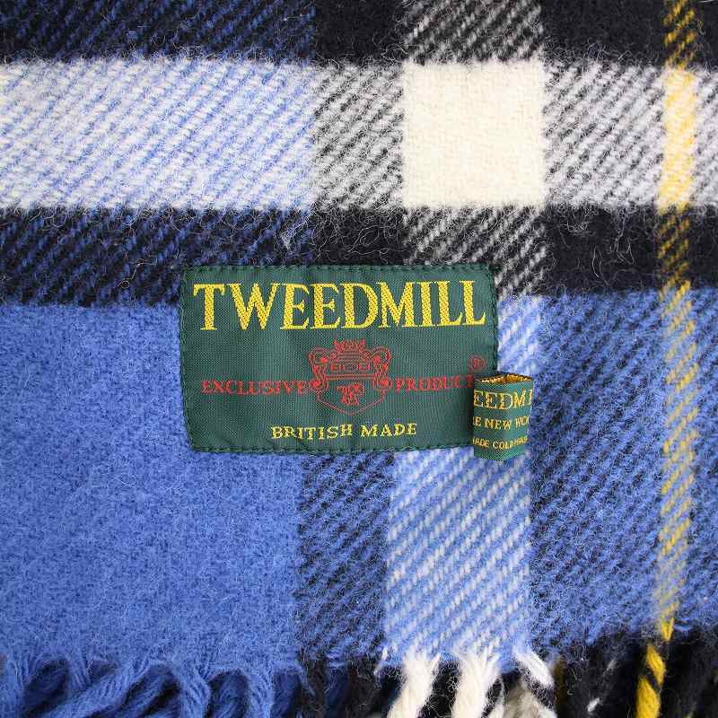 ツイードミル TWEEDMILL マフラー フリンジ チェック柄 ウール 総柄 青 ブルー マルチカラー /BB レディース