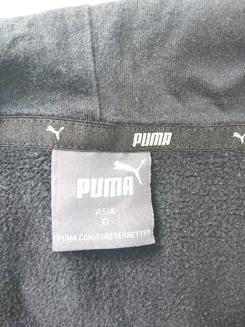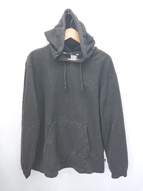 ◇ Θ PUMA プーマ ロゴ刺繍 長袖 プルオーバーパーカー サイズXL ブラック レディース メンズ E
