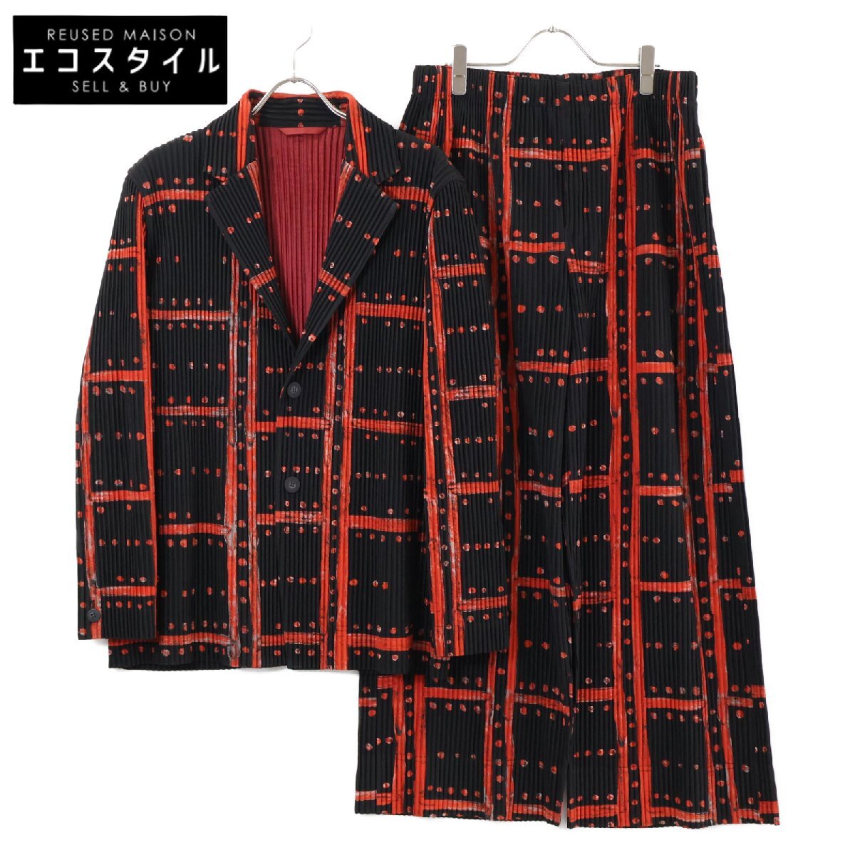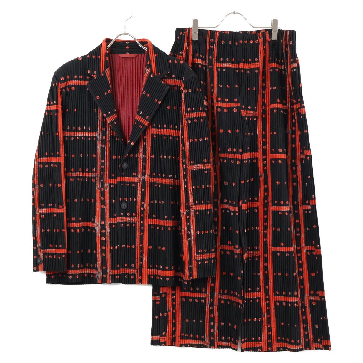 商品名 オムプリッセ イッセイミヤケ 美品 HP91JD162/JF164 総柄 プリーツ テーラードジャケット/ワイドパンツセットアップ