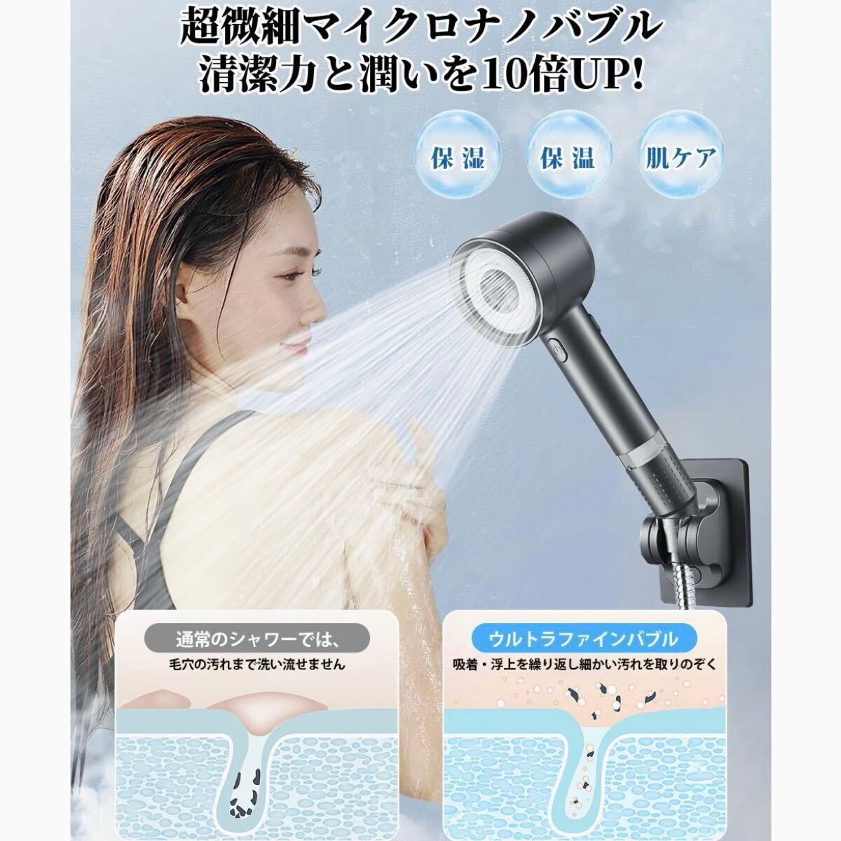 4種類の出水モードを搭載しておるシャワーヘッド マイクロナノバブルは、シャワータイムをまるでSPAのような特別な体験に変えます。やさしいミストモードは、お肌に刺激を与えずに洗顔可能。ストレートモードはリラックスしたバスタイムに最適です。ストレートミックスモードは適度な洗浄力で汚れをしっかり落とし、ジェットモードなら全身を爽快に洗い流せるだけでなく、トイレ掃除までこなします。水流モードを使い分けることで、より効果的で快適なシャワーの時間を楽しめますよ。