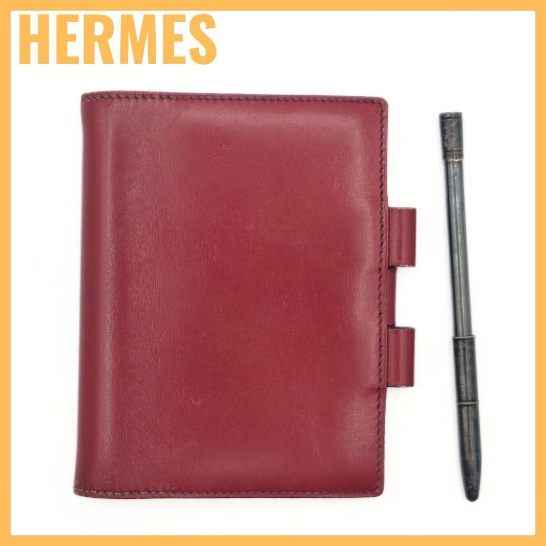 HERMES エルメス レザー アジェンダ 手帳カバー ○Q刻印 レザー 925 ボールペン付き