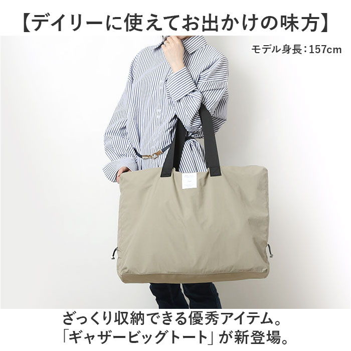 商品説明 | ・・【デイリーに使えてお出かけの味方】 ・ざっくり収納できる優秀アイテム。「ギャザービッグトート」が新登場。 ・【トレンド感のあるサイドギャザー】 ・両サイドにギャザーをプラス。沢山収納しても、くたっとさせてもOK。 ・【コードを絞って自在に変形】 ・両サイドのドローコードをキュッと絞ると、フォルムがチェンジ! ・【サッと手に取れて使い心地軽やか】 ・手軽に持ち出せて、体に負担がかからない!長時間の移動もラクラク。 ・【肩掛けできてストレスフリー】 ・ハンドルは肩に掛けやすい長さに設計。アクティブに動く日も快適。 ・【開閉スムーズ、安心のファスナー式】 ・ガバっと開いて取り出しやすく、ファスナーを閉じればセキュリティ面も安心。 ・【しっかり入る大容量サイズ】 ・絞らない状態でA3サイズがすっぽり。マチもあり、1泊程度の着替えなども収納可能。 ・【サッと取り出せて迷子知らず】 ・内側に3つのポケットを配置。バッグの中で小物を探す手間が不要。 ・【ちょっとの雨なら大丈夫】 ・表面は汚れや水滴を弾きやすい、撥水加工済み。お手入れも拭き取るだけ。 ・(※)完全防水ではありません。 ・【色んなシーンでヘビロテ間違いなし】 ・お出かけや通学、レジャーに!マザーズバッグとしても重宝。 ・【キャリーオンOKで移動もスマート】 ・背面のベルトをキャリーケースのバーに通すことができる、キャリーオン仕様。出張や旅行にも。 ・【カジュアルスタイルにマッチ】 ・ミリタリー感のあるカラーバリエーション。飽きのこないシンプルデザイン。 ・【ポケット仕様】 ・内側:ファスナーポケット×1、オープンポケット×2 |
