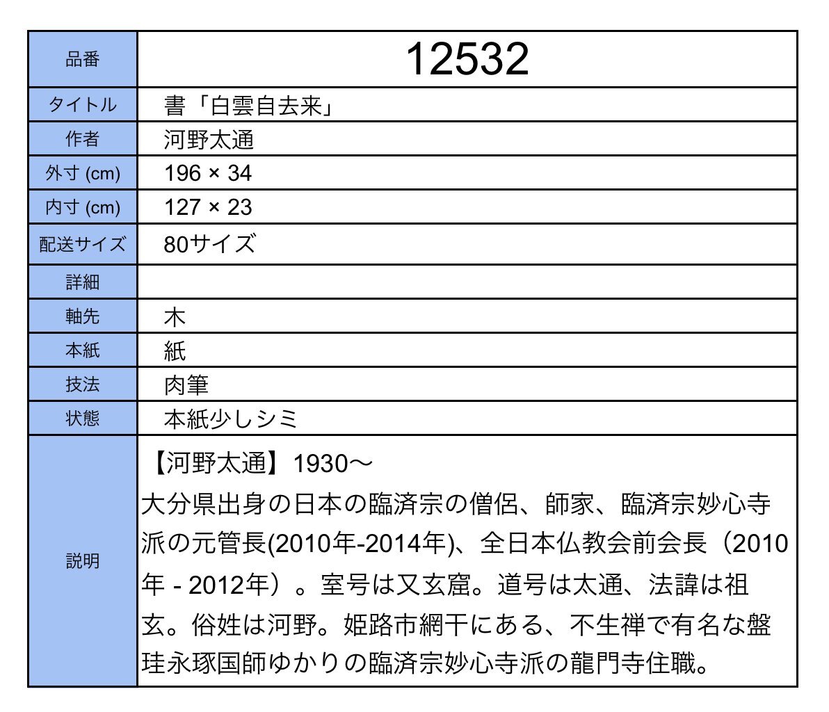 【模写】吉】12532 河野太通 書「白雲自去来」 臨済宗 妙心寺派 花園大学学長 龍門寺住職 仏教 大分県の人 茶掛け 茶道具 禅語 掛軸 掛け軸