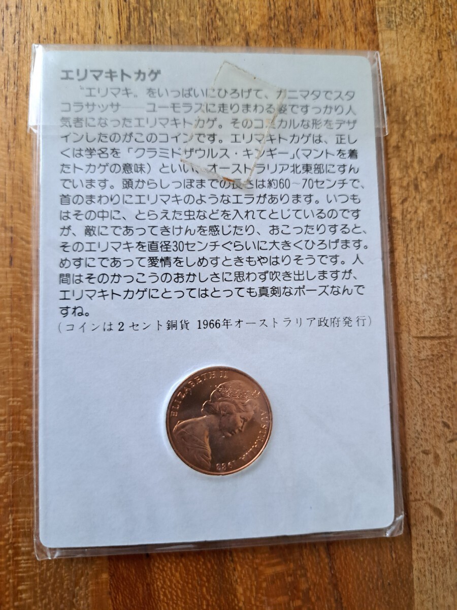 エリマキトカゲコイン オーストラリア政府発行 1996年発行 2セント 銅貨 未開封