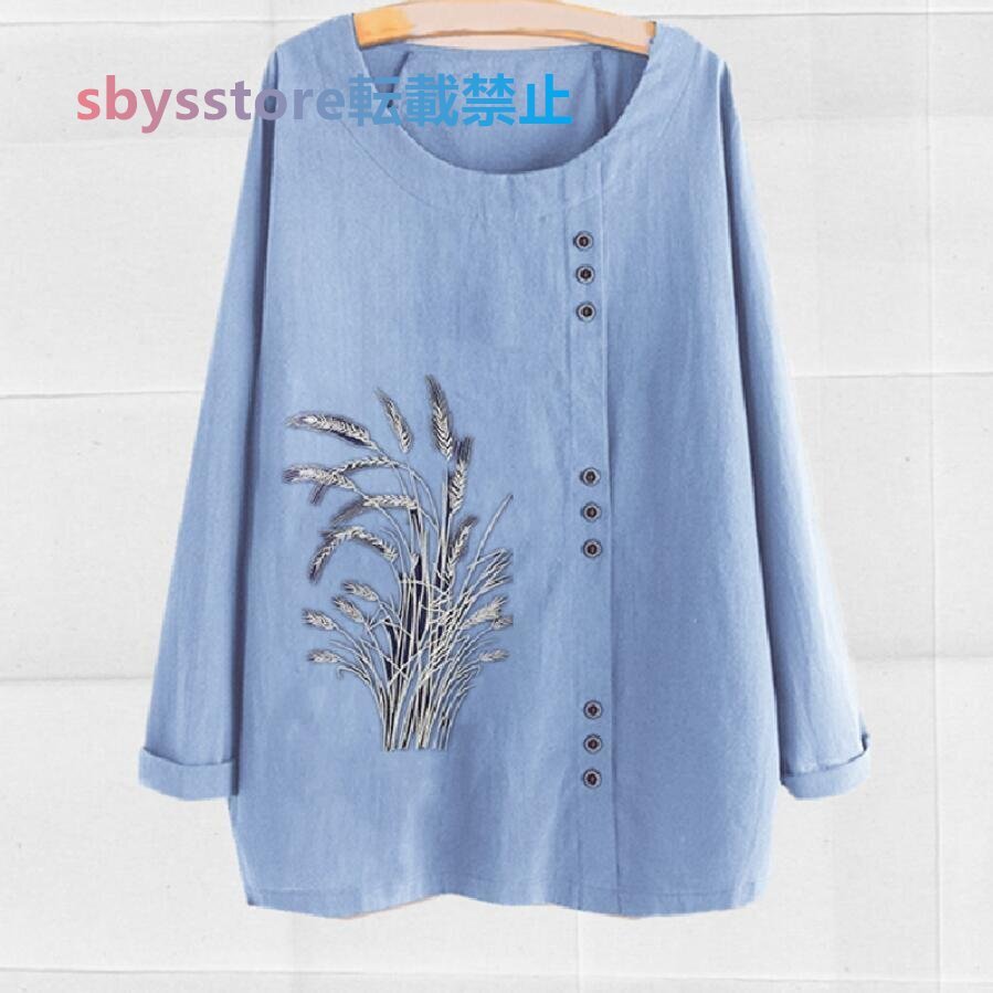 秋新作 カジュアル ブラウスシャツ 大きいサイズ プリント柄 切り替え ゆったり 綿麻 普段着 長袖 チュニック