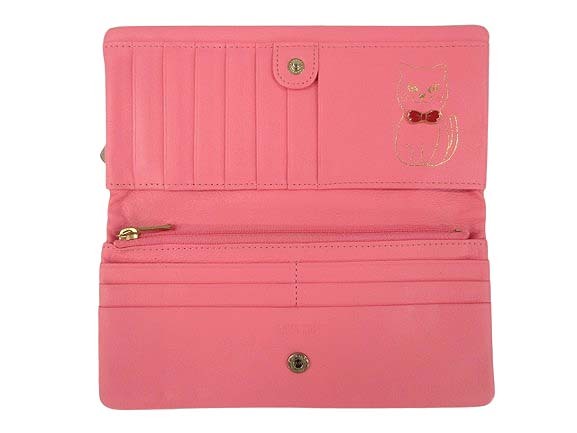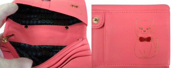 アナスイ ANNA SUI TITI&PIPI がま口 長財布 ロングウォレット ピンク 猫 ネコ 星 レザー 本革 レディース