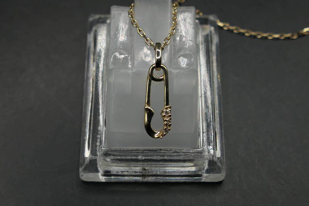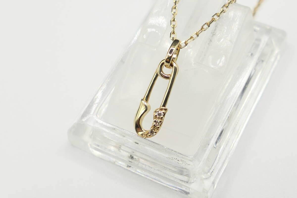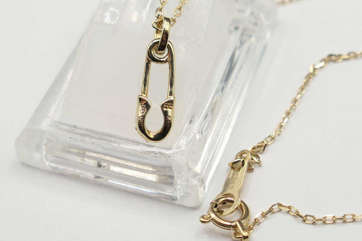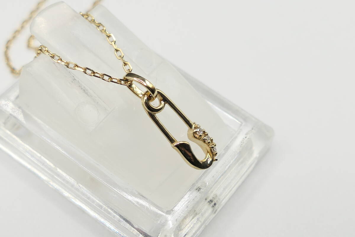 日常にある安全ピンをモチーフにした遊び心のあるK10製のネックレス。