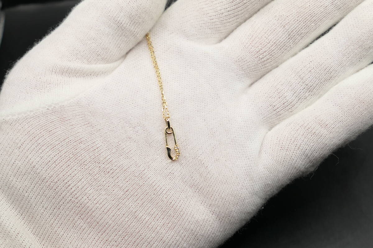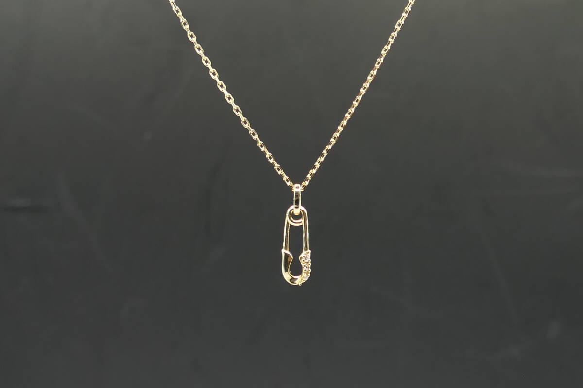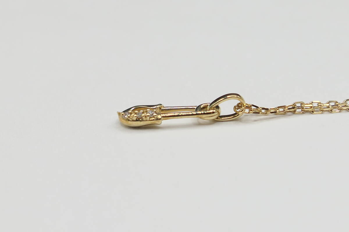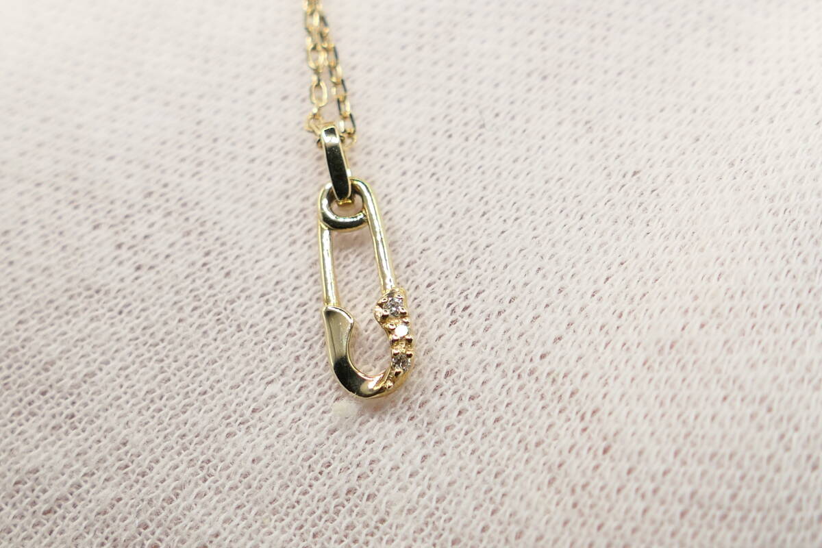 日常にある安全ピンをモチーフにした遊び心のあるK10製のネックレス。