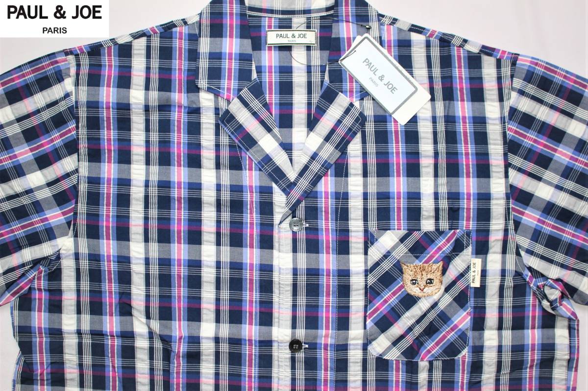 PJ-19 新品本物即決【L】定価6,600円 ポール&ジョー メンズ紳士服 前開き半袖シャツ ヌネット猫ルームウエアパジャマ ※トップスのみ