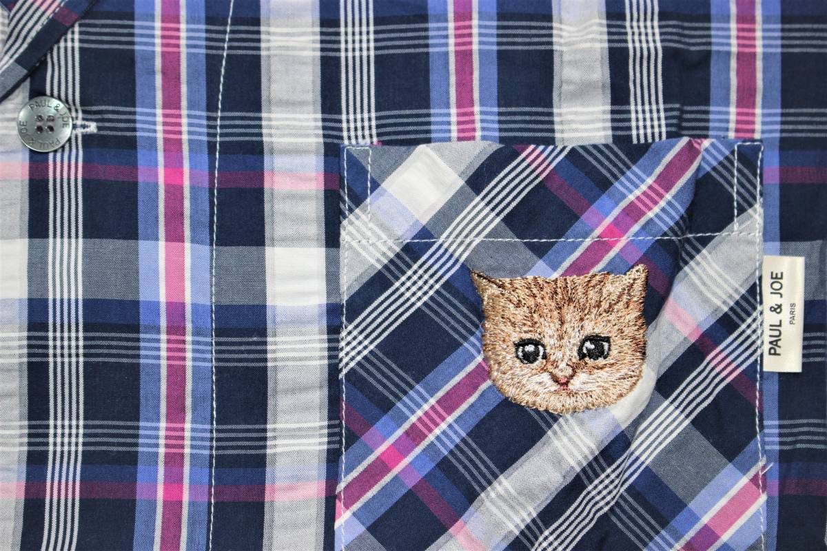 ◇胸ポケット【PAUL&JOE PARIS】のワンポイントと猫の刺繍がございます。
