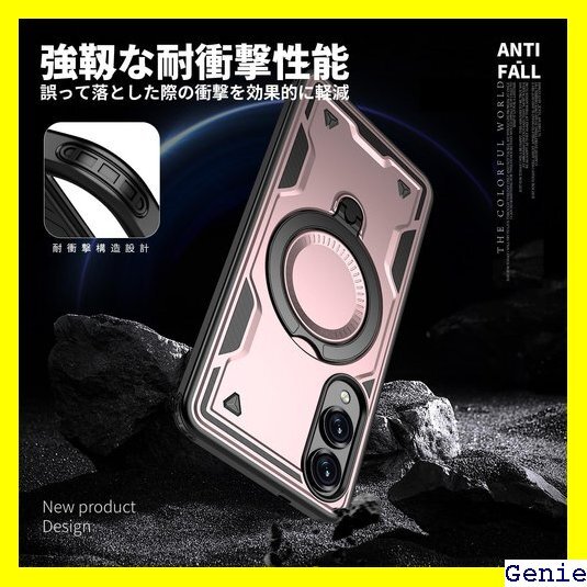 Galaxy S25 Edge 用 ケース リング付き 耐衝撃 米軍MIL規格 アイフォン S25Edge 用 ケース スタンド機能 車載ホルダー対応 滑り止め ワイアレス充電対応 ピンク C98-s25 edge-05 31