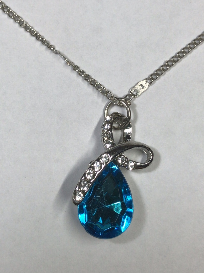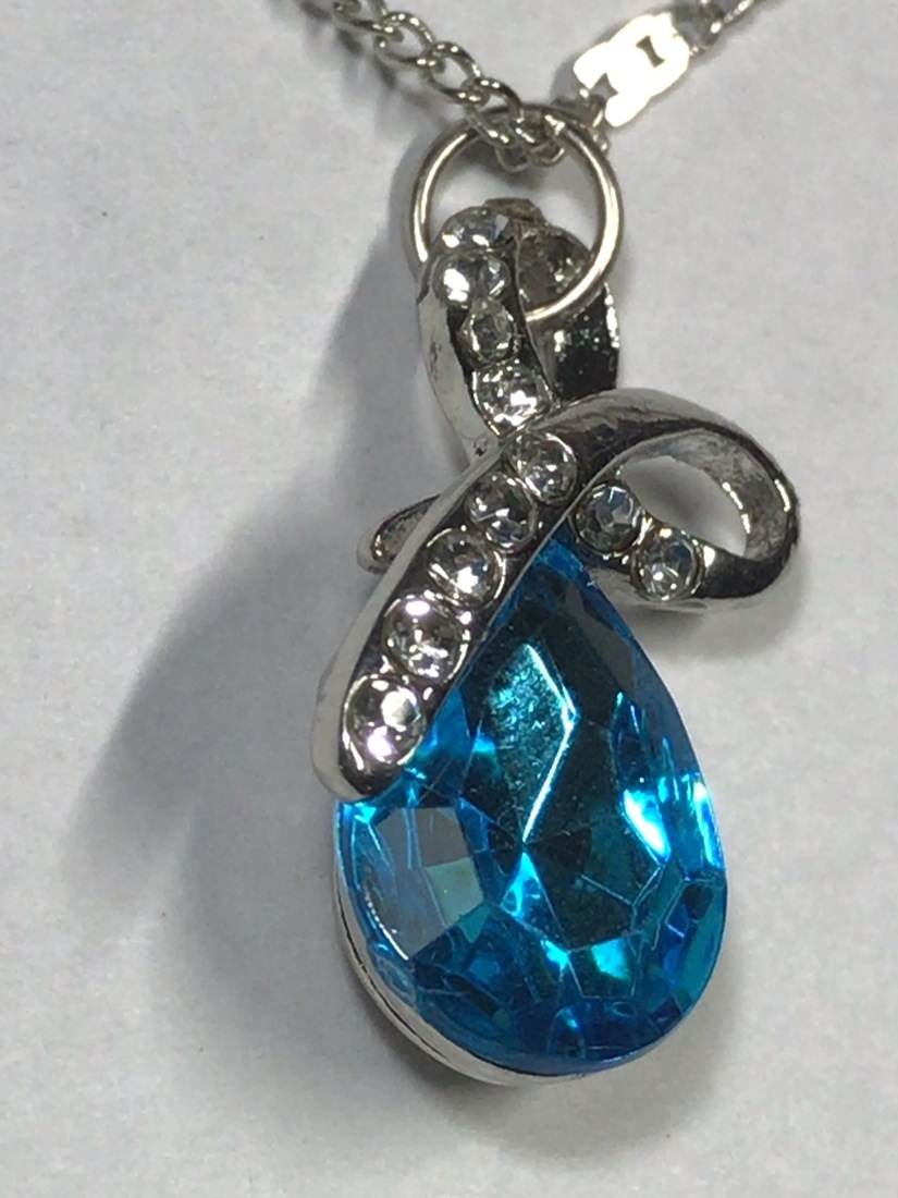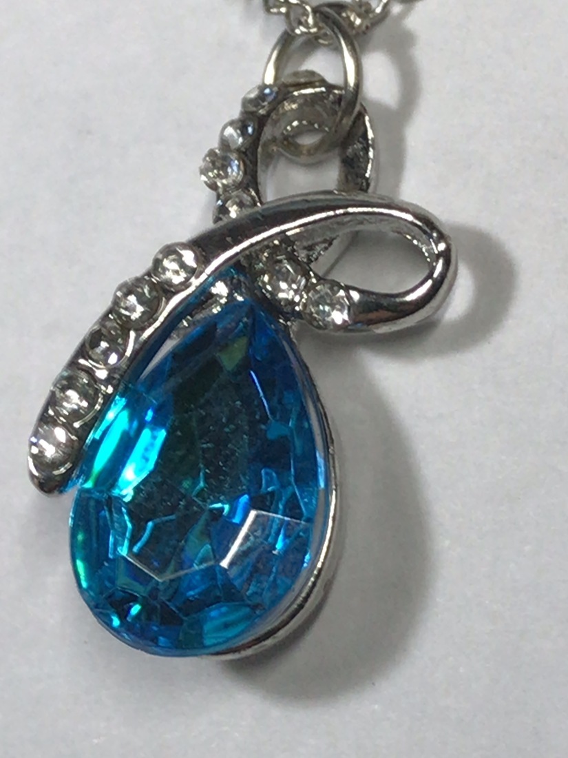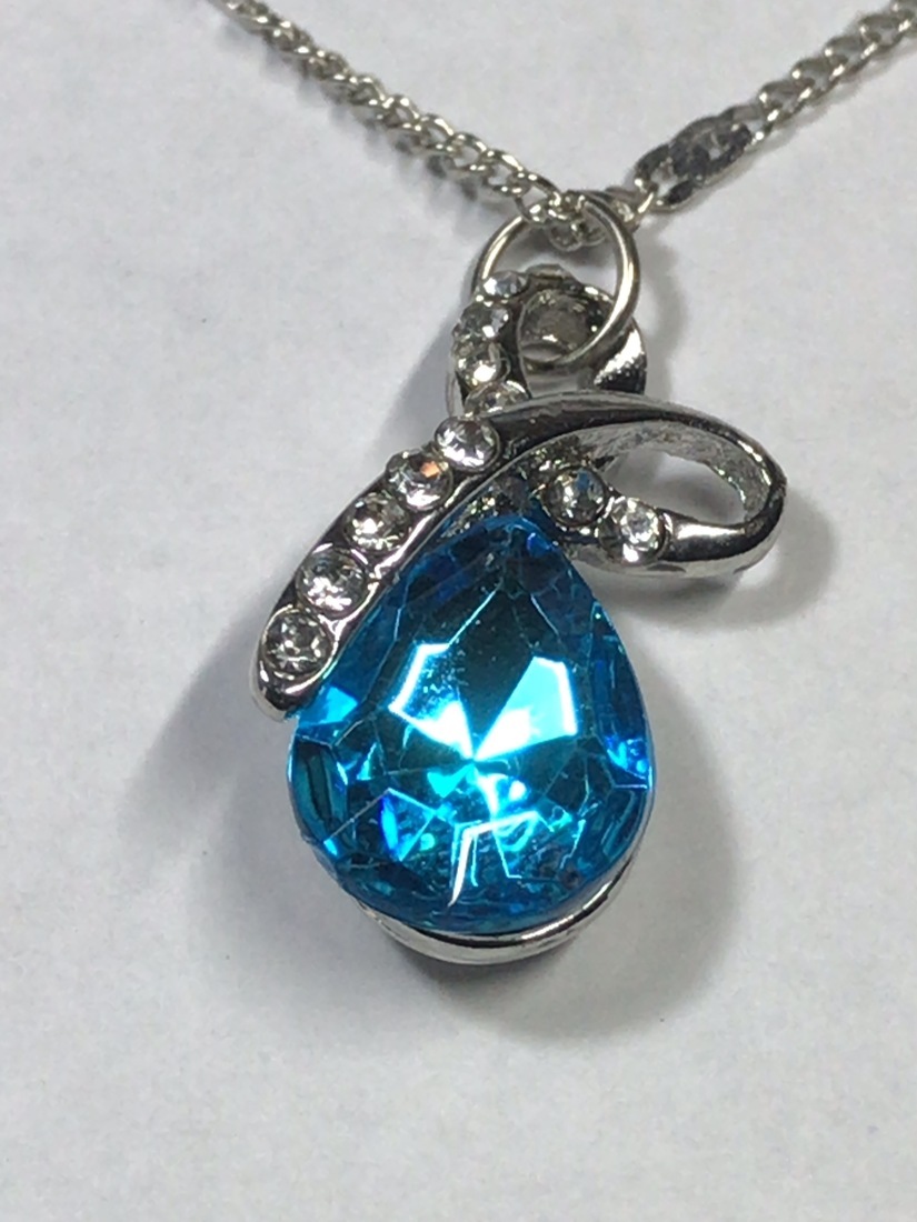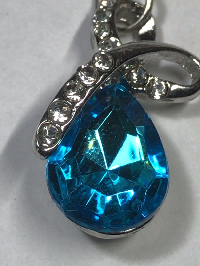 大粒 クリスタル ラインストーン ブリリアントカット CZダイヤモンド ペンダント ネックレス スカイブルー