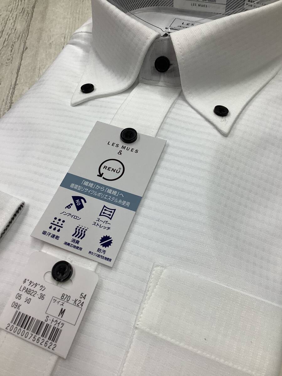 39-86 長袖Mサイズ ★ボタンダウンドレスシャツ ノンアイロン ポリエステル スーパーストレッチ素材  ★白チェック柄
