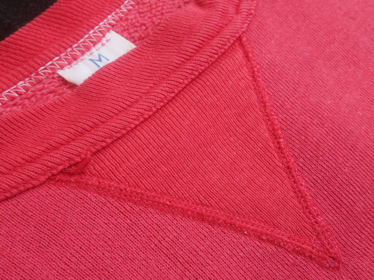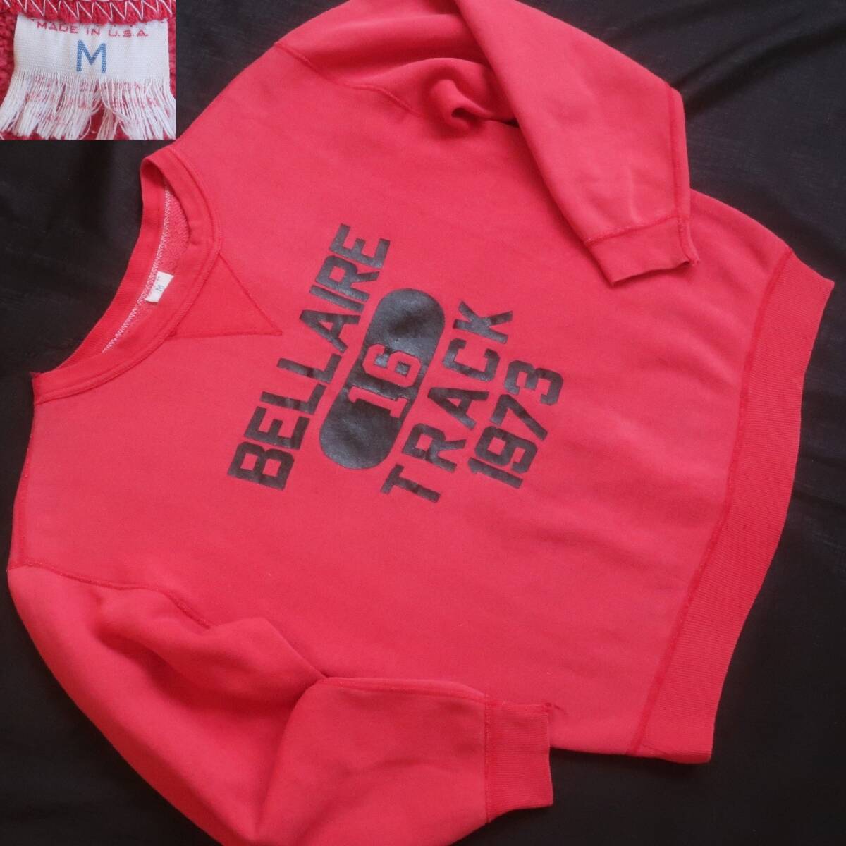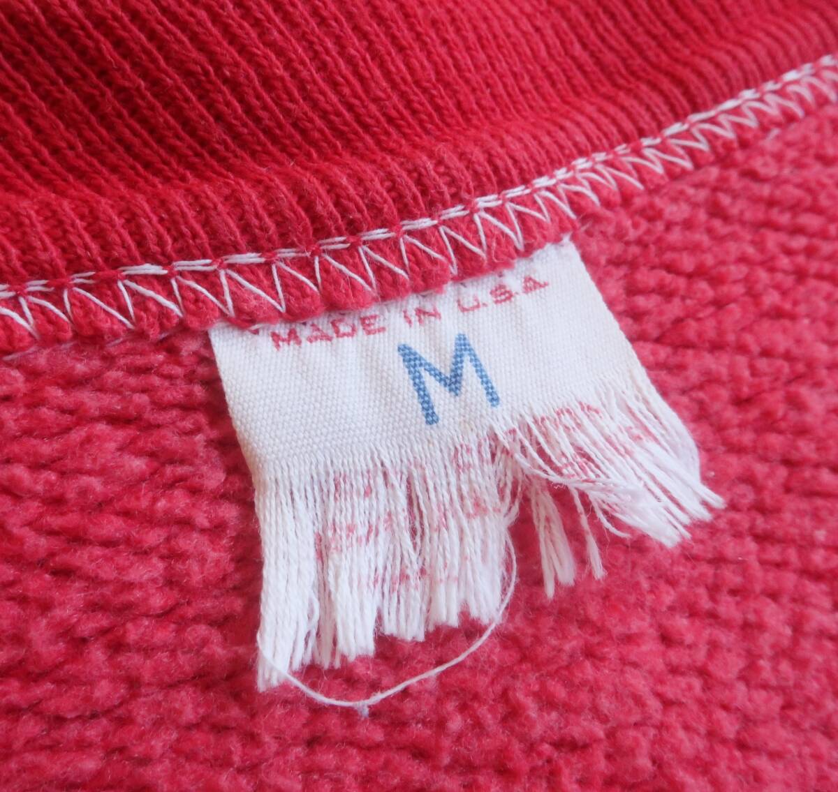 古着★ラッセル RUSSELL★1968~73年代★サイズタグ★4連 カレッジプリント★貼付け 前V ガゼット★ビンテージ スウェット 赤 黒 M★935