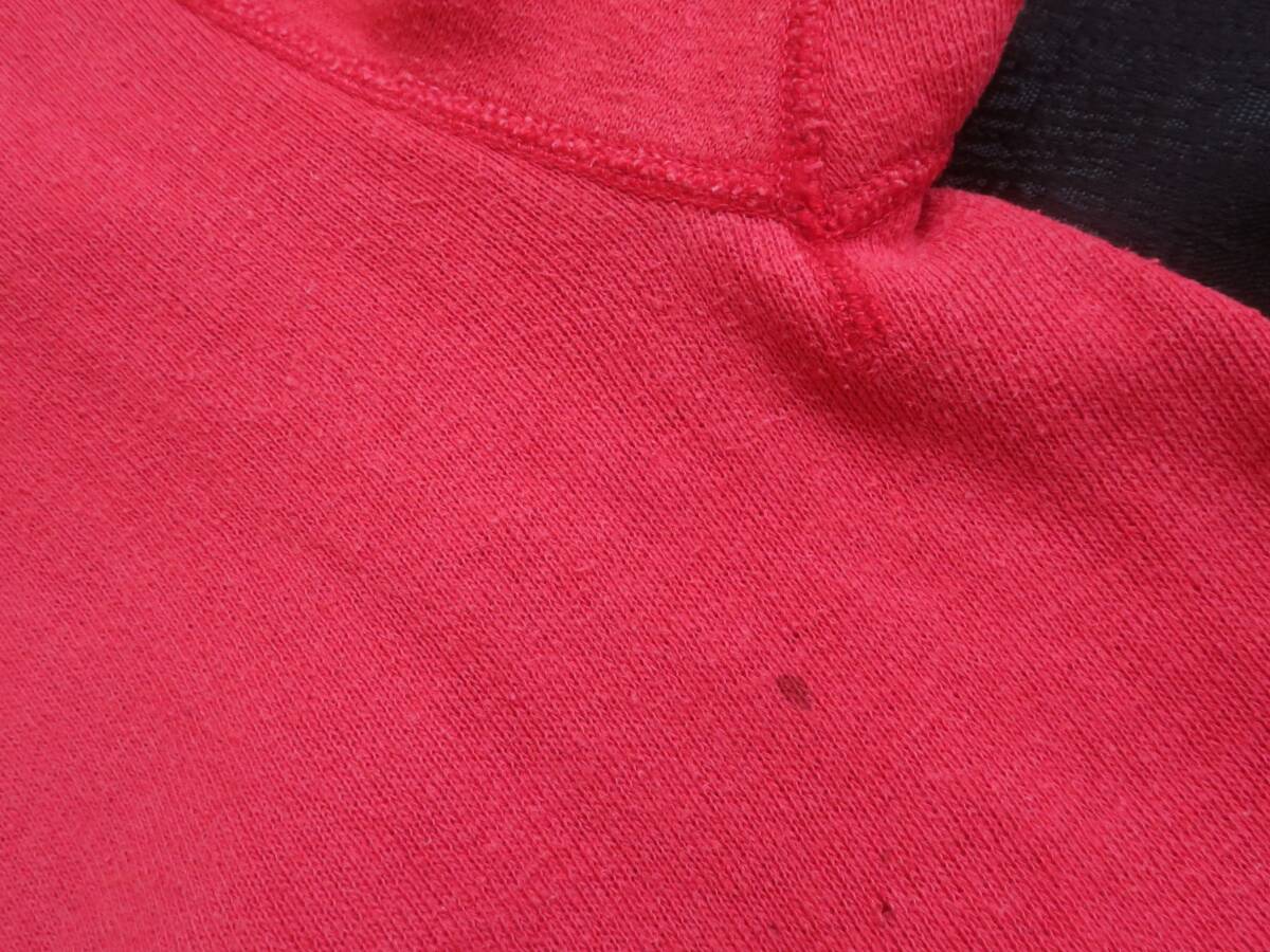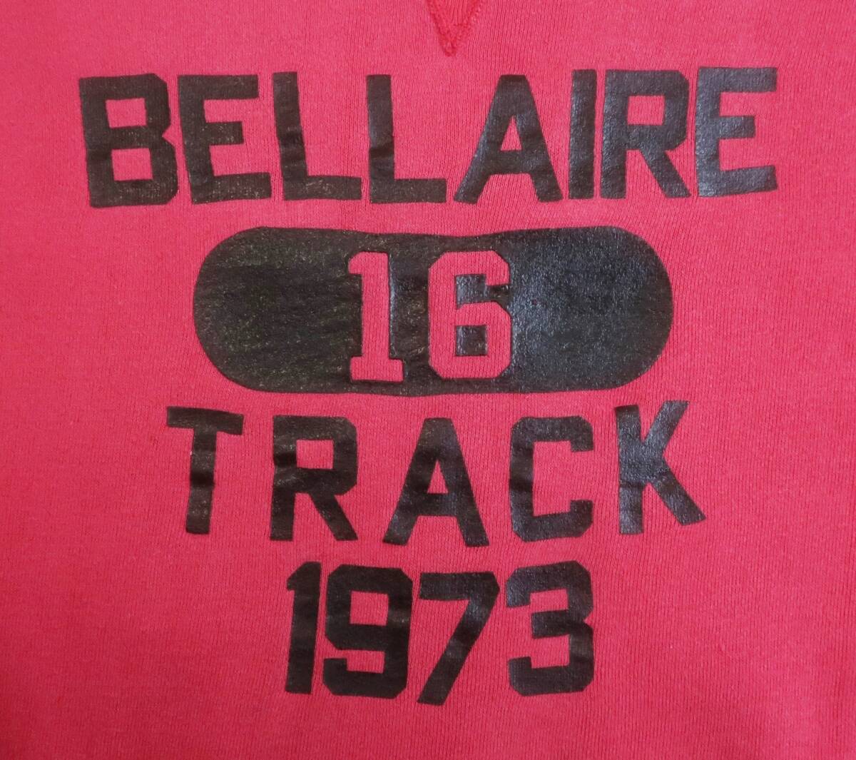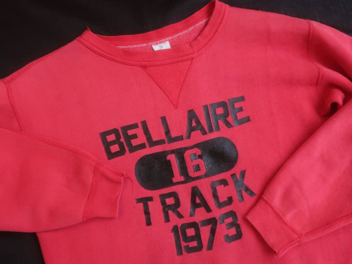 古着★ラッセル RUSSELL★1968~73年代★サイズタグ★4連 カレッジプリント★貼付け 前V ガゼット★ビンテージ スウェット 赤 黒 M★935
