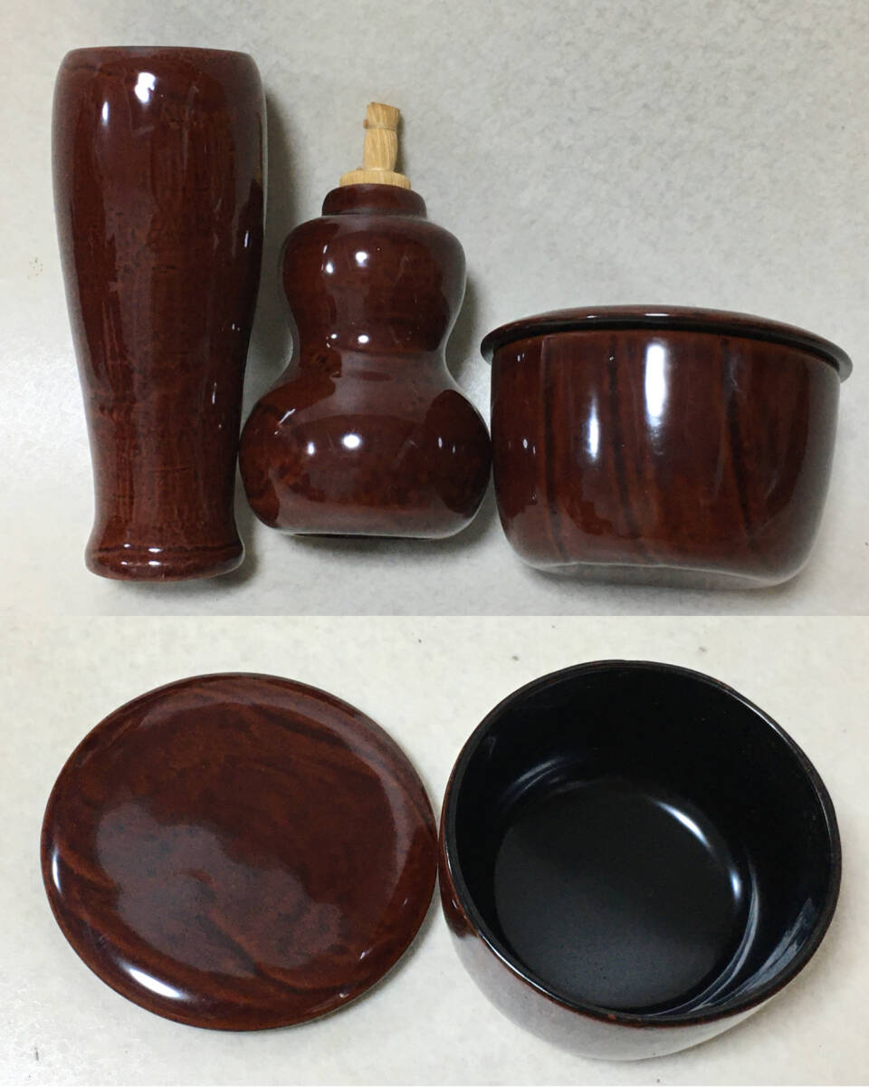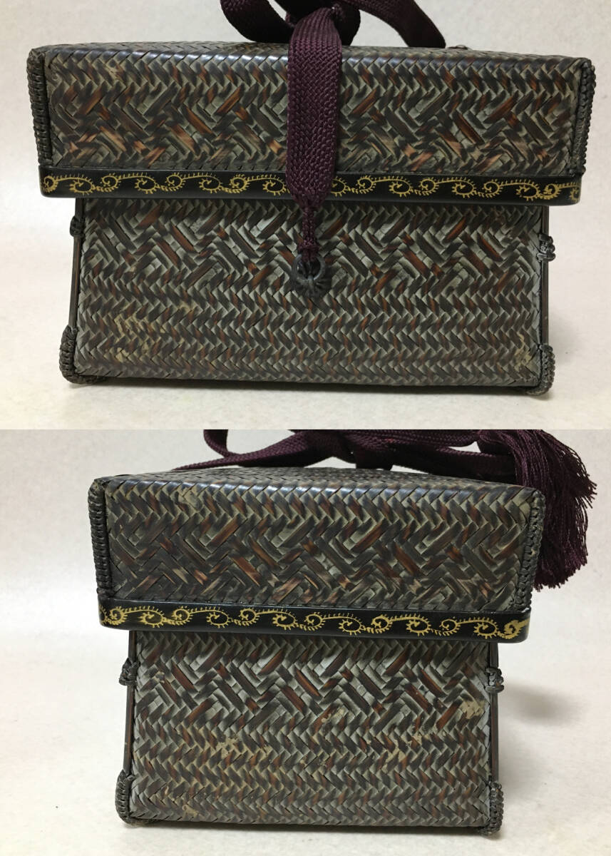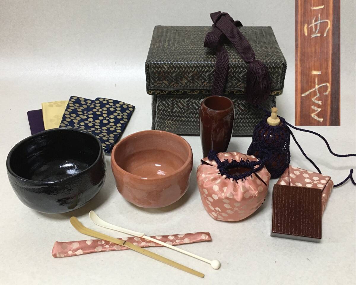 | * 商品説明 * 御所籠: 紐に色褪せ箇所があります。 外側に汚れができています。 画像5をご参考ください。 茶碗: 未使用品で、状態いいです。 茶筅筒・振出・香合: 木製 状態いいです。 棗: 木製 ややすれがあります。 茶杓:状態いいです。竹製のみ袋に入ります。もう一つは長く入りません。 布製品・編み物:状態いいです。 サイズ: 籠:20×15cm 高さ13.5cm 赤楽茶碗:直径10cm 高さ7cm 黒楽茶碗:直径11.5cm 高さ7.5cm サイズにつきましては若干の誤差があるものとお考えください。