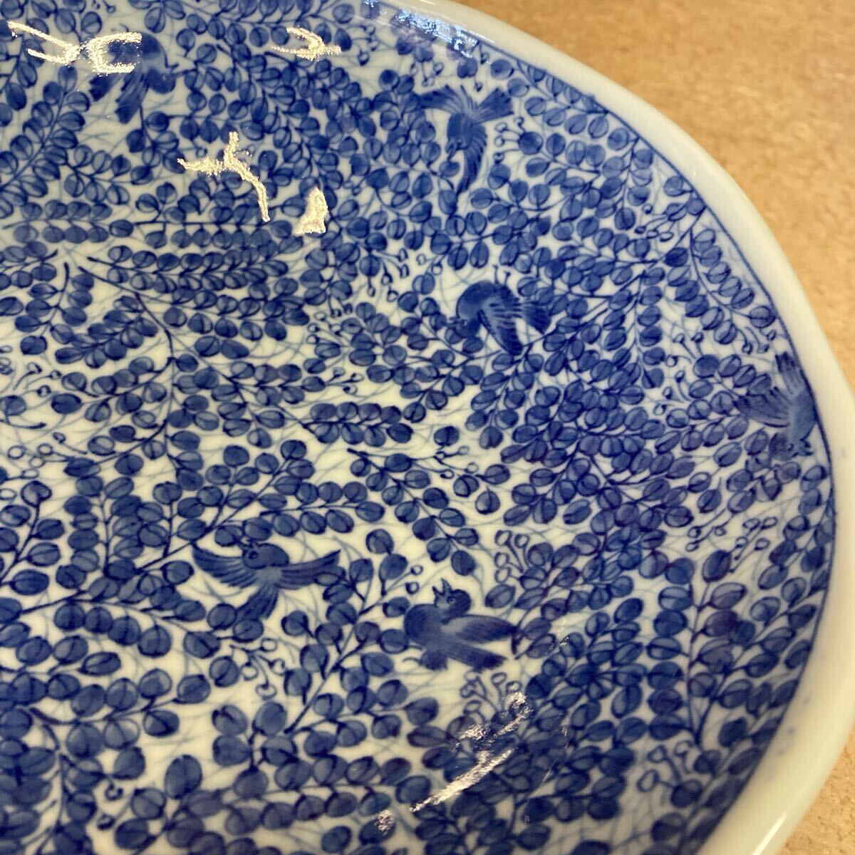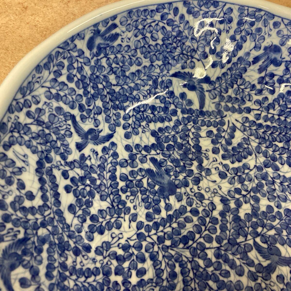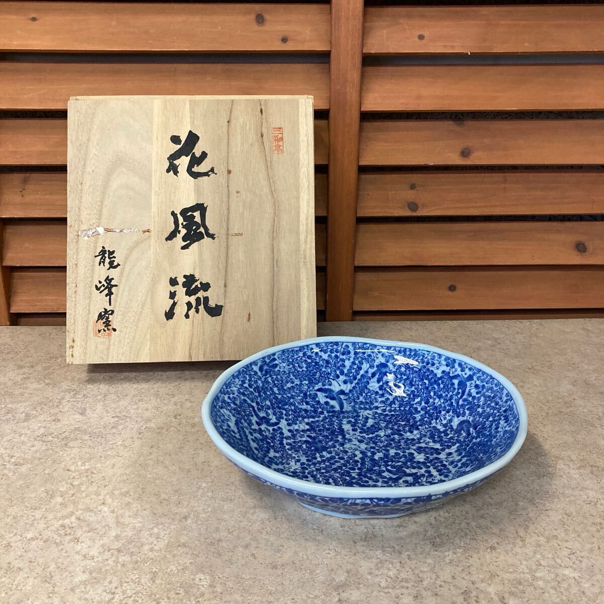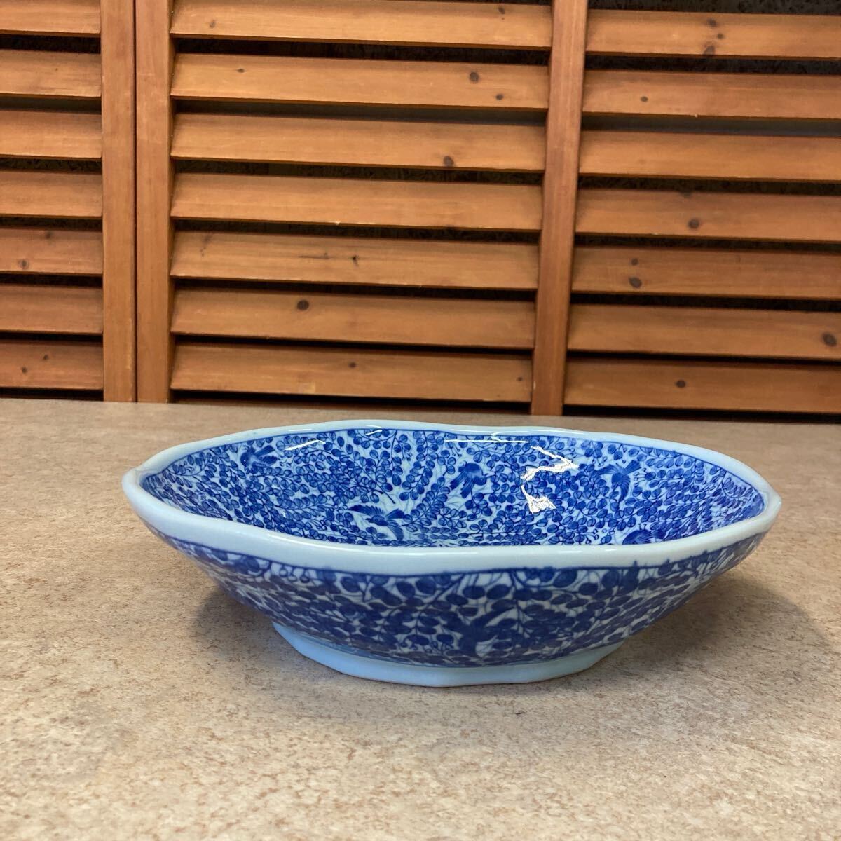 | △341 未使用品【龍峰窯 三洋陶器】 染付萩 大鉢 花風流 | |