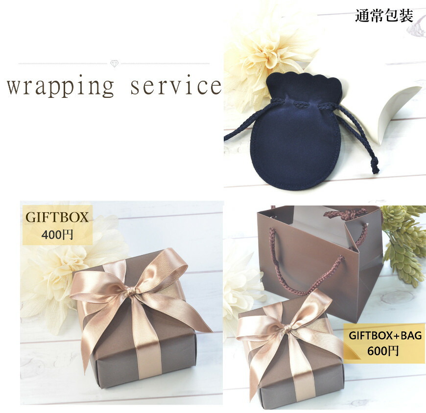 | その他 | こちらの商品はご注文を頂いてからお時間を頂き、一つ一つお作りする受注生産商品です。 自分用 普段使い はもちろん 誕生日 母の日 クリスマス 記念日 等 贈り物 にも最適です。 ■当店の発行する品質保証書付 ■お買い上げ後6か月の無料お修理付帯 ■全国送料無料 ■ECO包装(ポーチ付き) ■有料ギフトラッピング承ります。(BOXリボン:400円/BOXリボン+手提げBAG:600円) ※なるべく実物の色あいに近づけるように心がけて撮影していますが、モニター環境によって素材感や色合いが若干異なる場合がございますのでご了承ください。 ※ジュエリーはとてもデリケートです。入浴やスポーツ、家事をするときはお外し頂く事をお勧めいたします。 また、汗や温泉、化粧品やフレグランスなどは変色や劣化の原因となりますので取り扱いにはご注意ください。 |