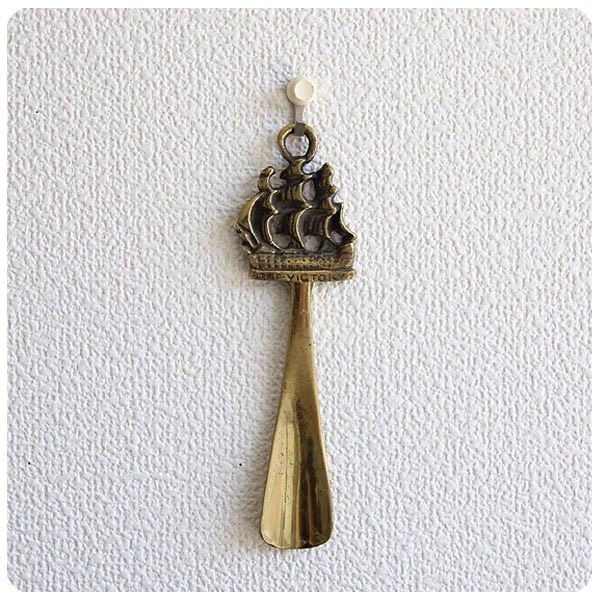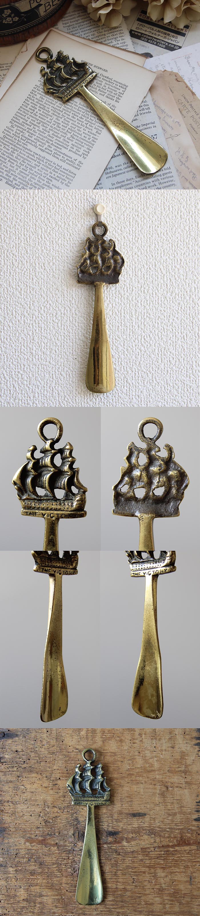イギリス アンティーク ブラス シューホーン 真鍮製靴べら 帆船 壁掛け 雑貨 店舗什器 K-550