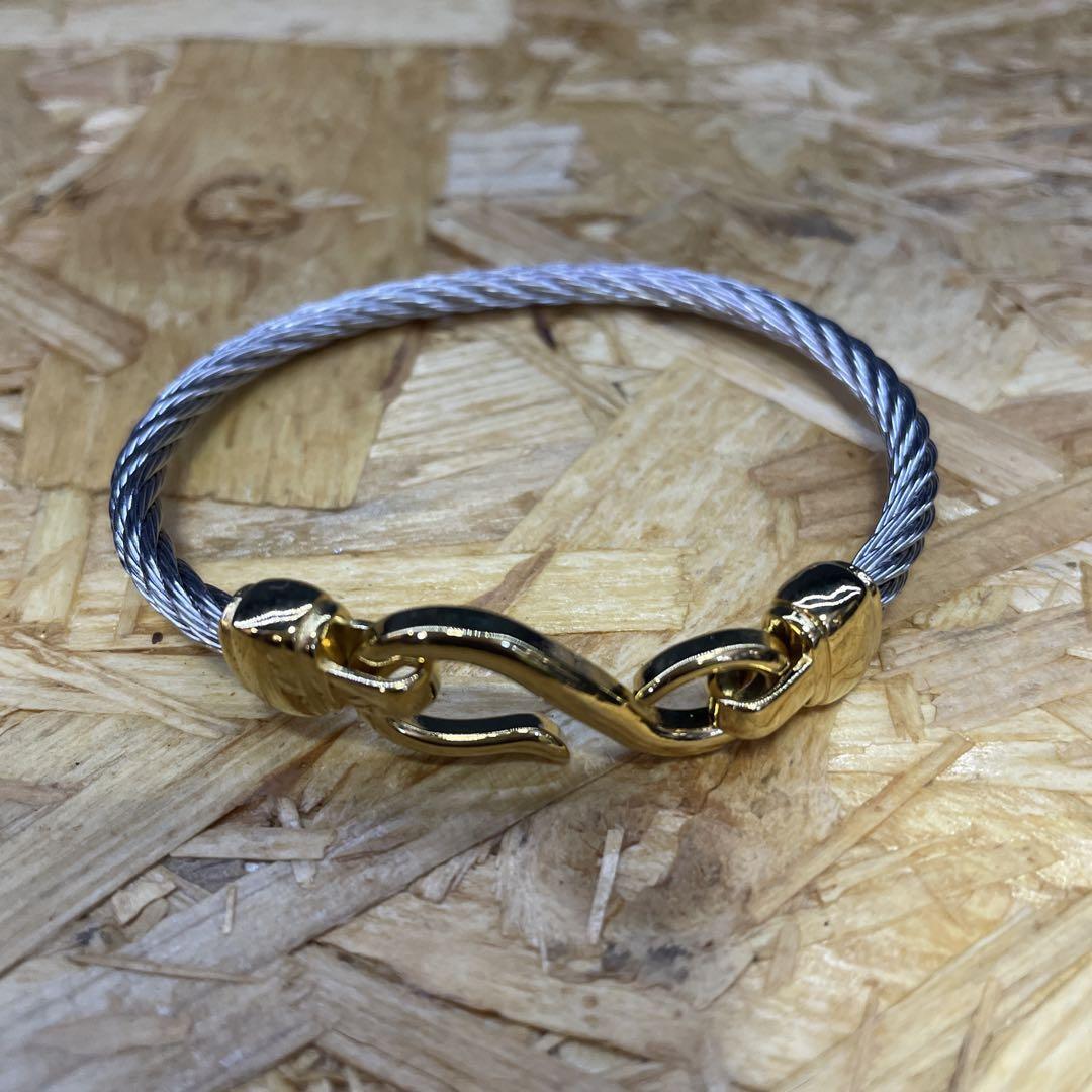 シルバーとゴールドのコンビネーションが魅力的なワイヤーバングル。 - カラー: シルバー・ゴールド - 素材: ワイヤー・金属 - サイズ: 約 18 cm ご覧いただきありがとうございます。