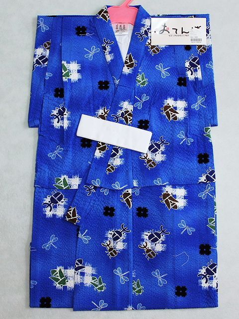 Y3563-03-90 塚羽留 こちらかわいい柄があふれる仕立上り男の子用ゆかたです。 お祭りに♪花火大会に♪と、こちらのかわいいゆかたでお出かけしてもませんか。 肩あげ・腰あげも、さらにひも付きなので簡単に着用できるのもうれしいですね。帯は付いておりません。 今回現品限りの在庫処分ですので最安値にてお願い致しております。 お色などは、青色地に 白や黒にて井桁柄やかぶと虫やセミ・トンボの柄などがあります。◎ | ||||||||