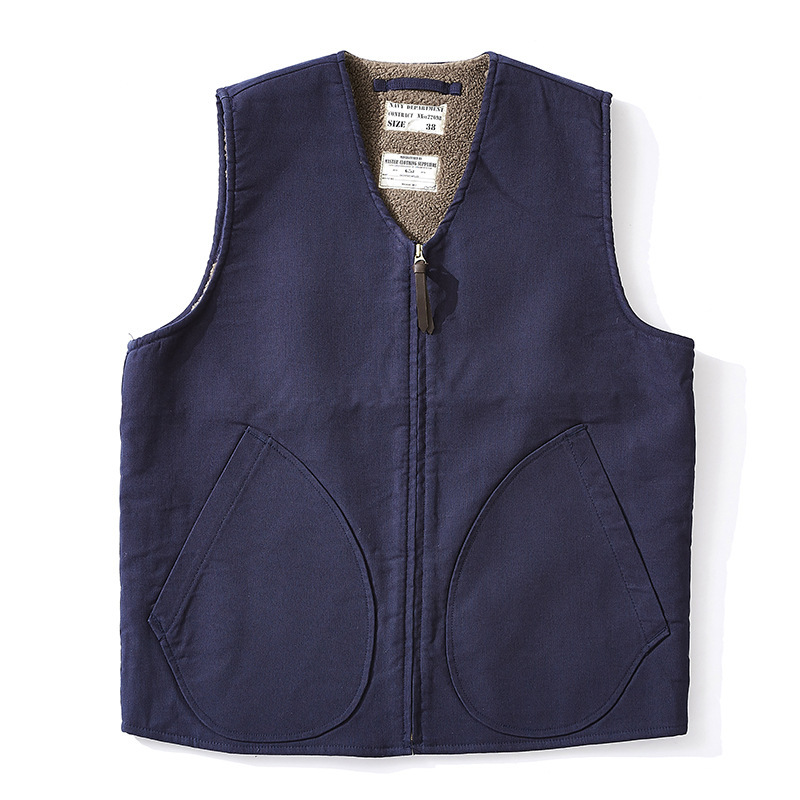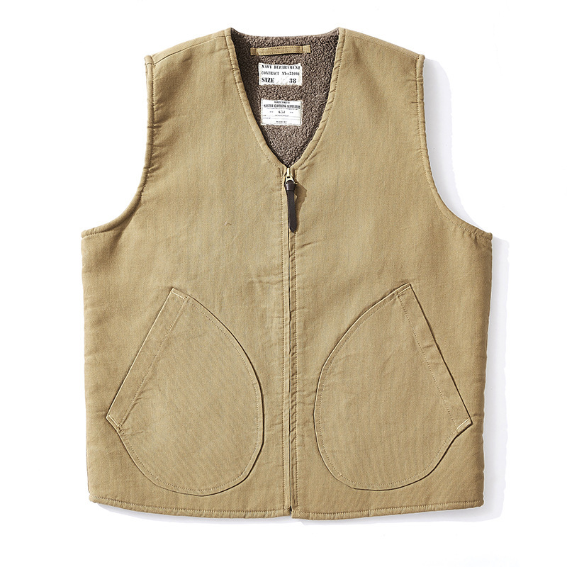 USNワーク ボア裏地付きで防寒性も抜群 ヴィンテージ復刻デッキベスト◆メンズ アメカジ ジレ S~XXL カーキ