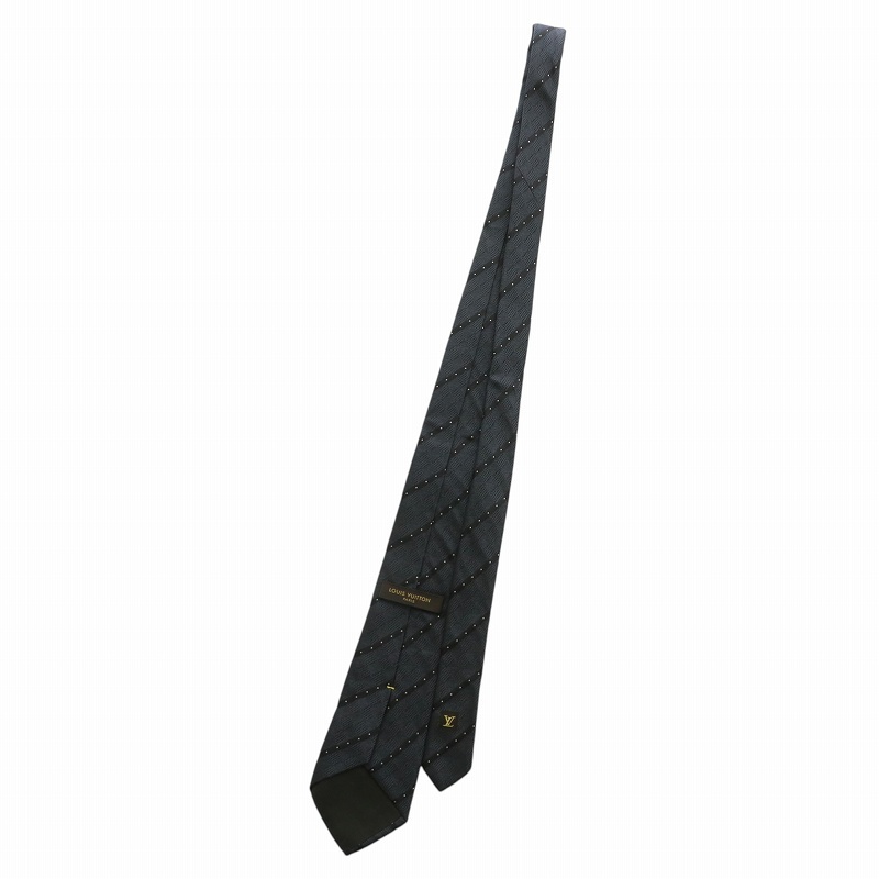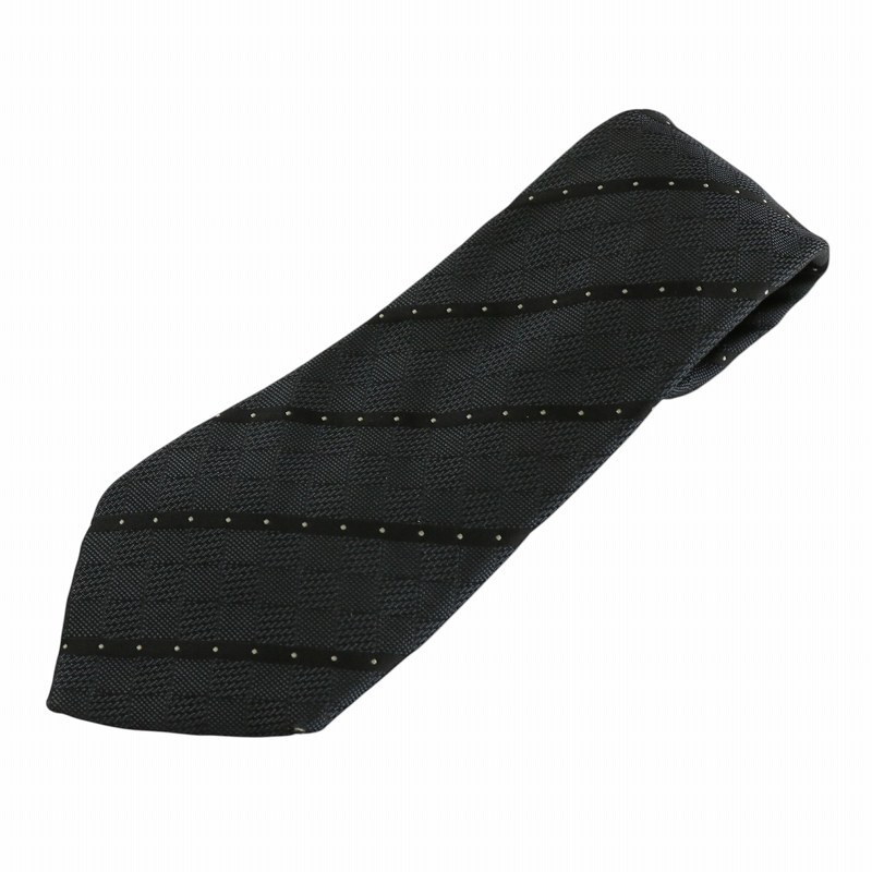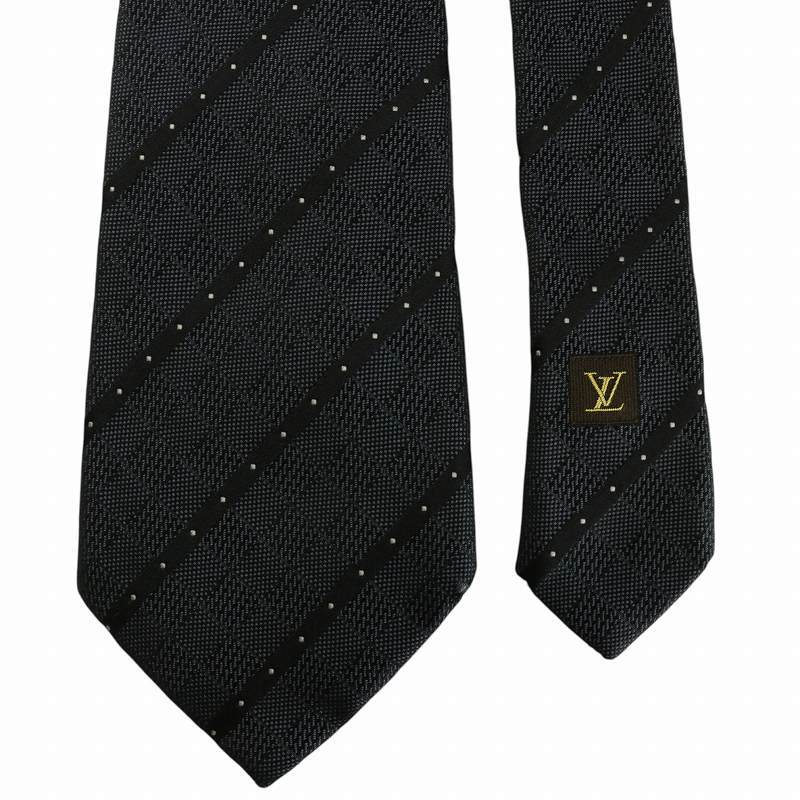 ルイヴィトン LOUIS VUITTON ネクタイ 絹 シルク レギュラータイ ストライプ ロゴ 紺 ネイビー 黒 ブラック /XZ ■OH ■GY12 メンズ