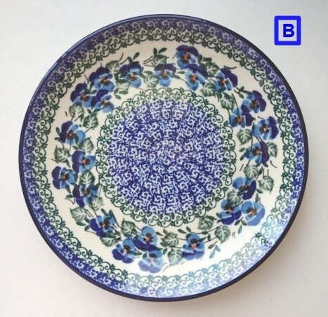 ポーランド ボレスワヴィエツ陶器 19.5cm皿/プレート B 藍&青パンジー/ビオラです。