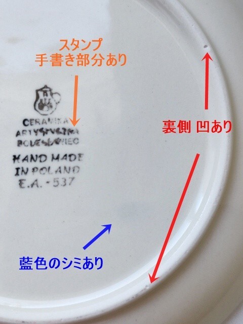 ・裏側 薄めの藍色のシミ、凹2カ所、スタンプが手書きになっている箇所あり